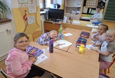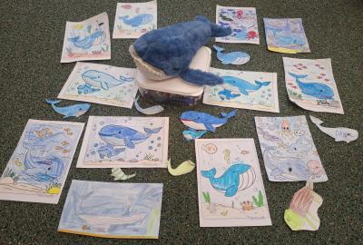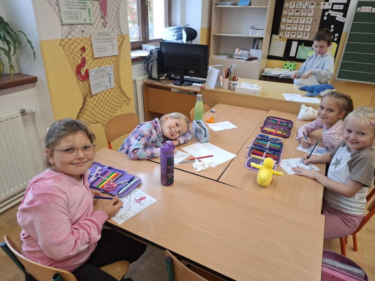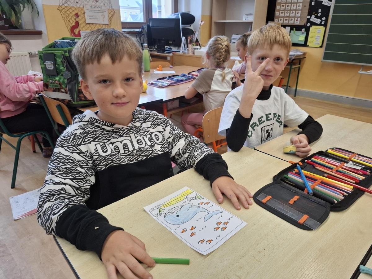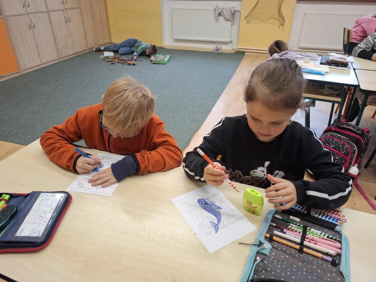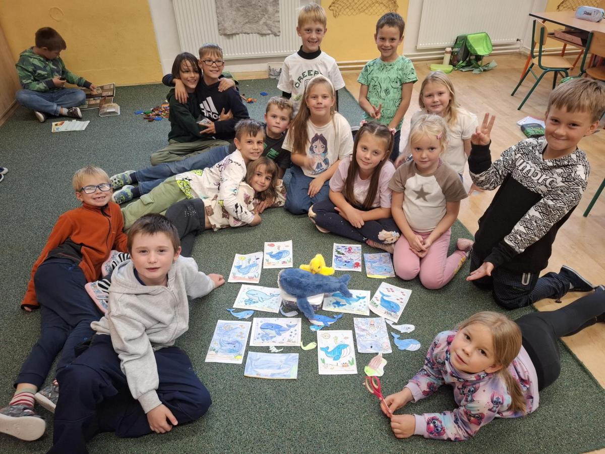 Když nás jedno deštivé odpoledne zahnalo dovnitř do družiny, společnost nám dělal i náš maskot velrybák Ňufík. Vypadal ale trochu smutně, jako by mu chyběli kamarádi...