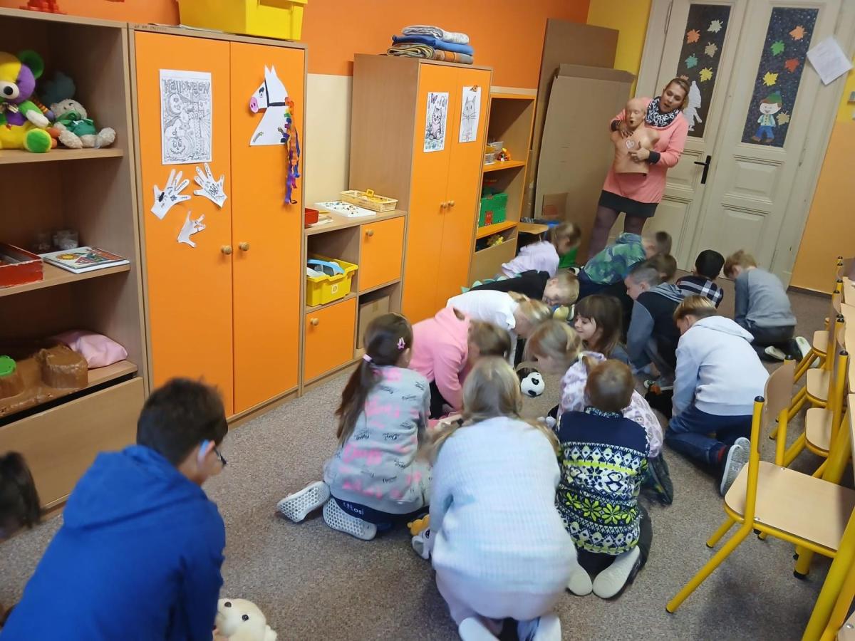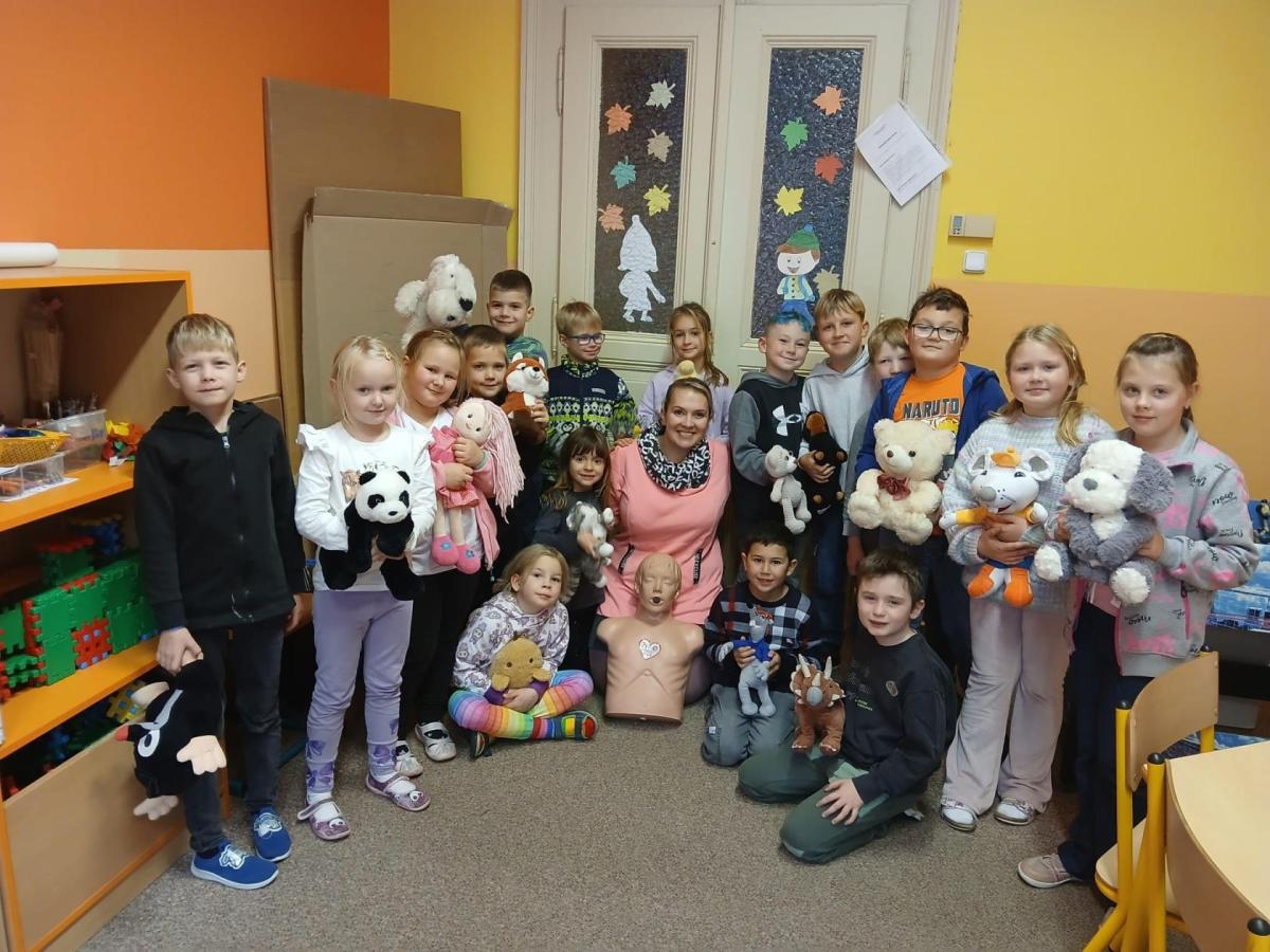 Kroužek Akademie mladých záchranářů pokračuje ve své činnosti s velkým nadšením. Získal také mimořádný dárek, který obohatil výuku i praktické ukázky. Díky ochotě a laskavosti vrchní sestry P. Plíškové ze záchranné stanice byla našim malým záchranářům věnována profesionální výuková figurína, na níž si děti mohou bezpečně a realisticky procvičovat poskytování první pomoci.