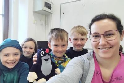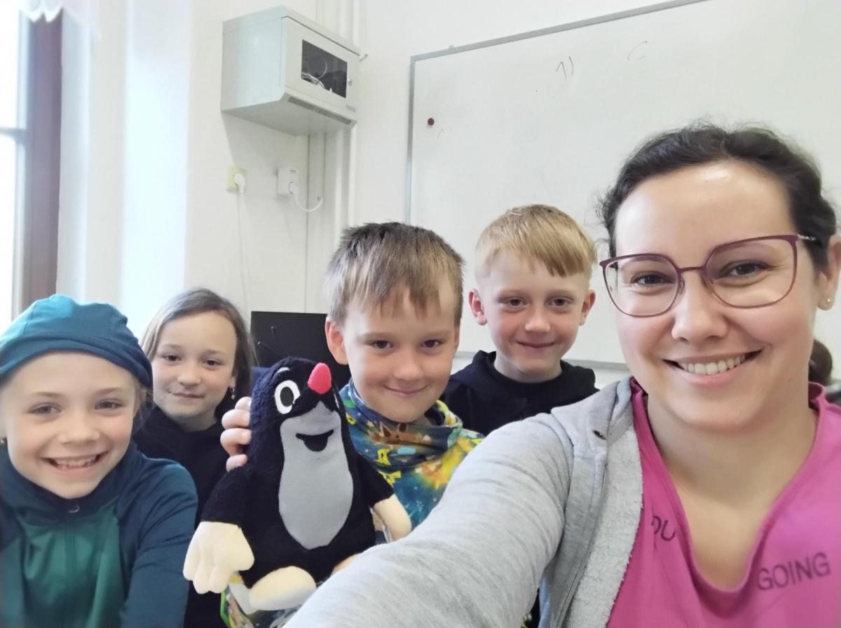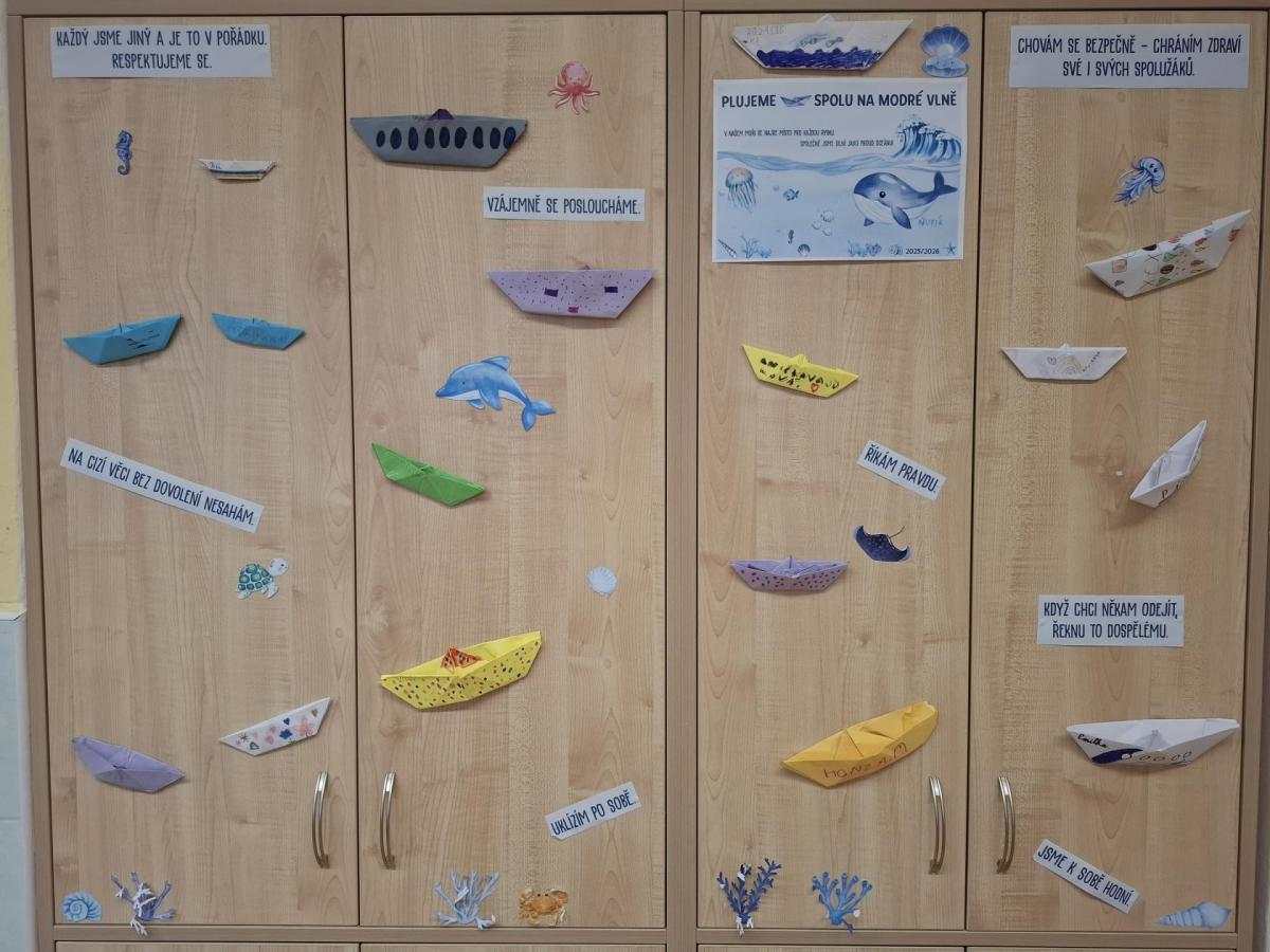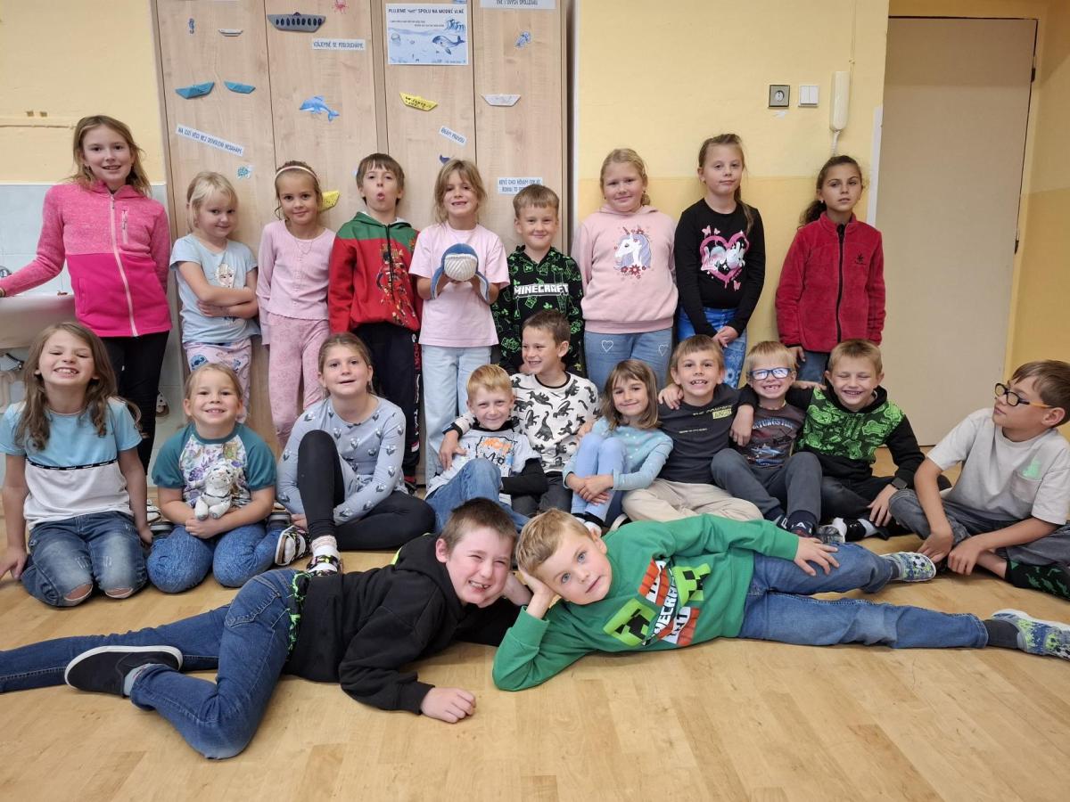 Naše modré oddělení vede vychovatelka Petra Rovenská. Pravidelně se v ní schází veselá parta třiceti dětí z 2.A a 3.C. Letos nám přibyl jeden nový člen, a to velrybák Ňufík - náš maskot :)