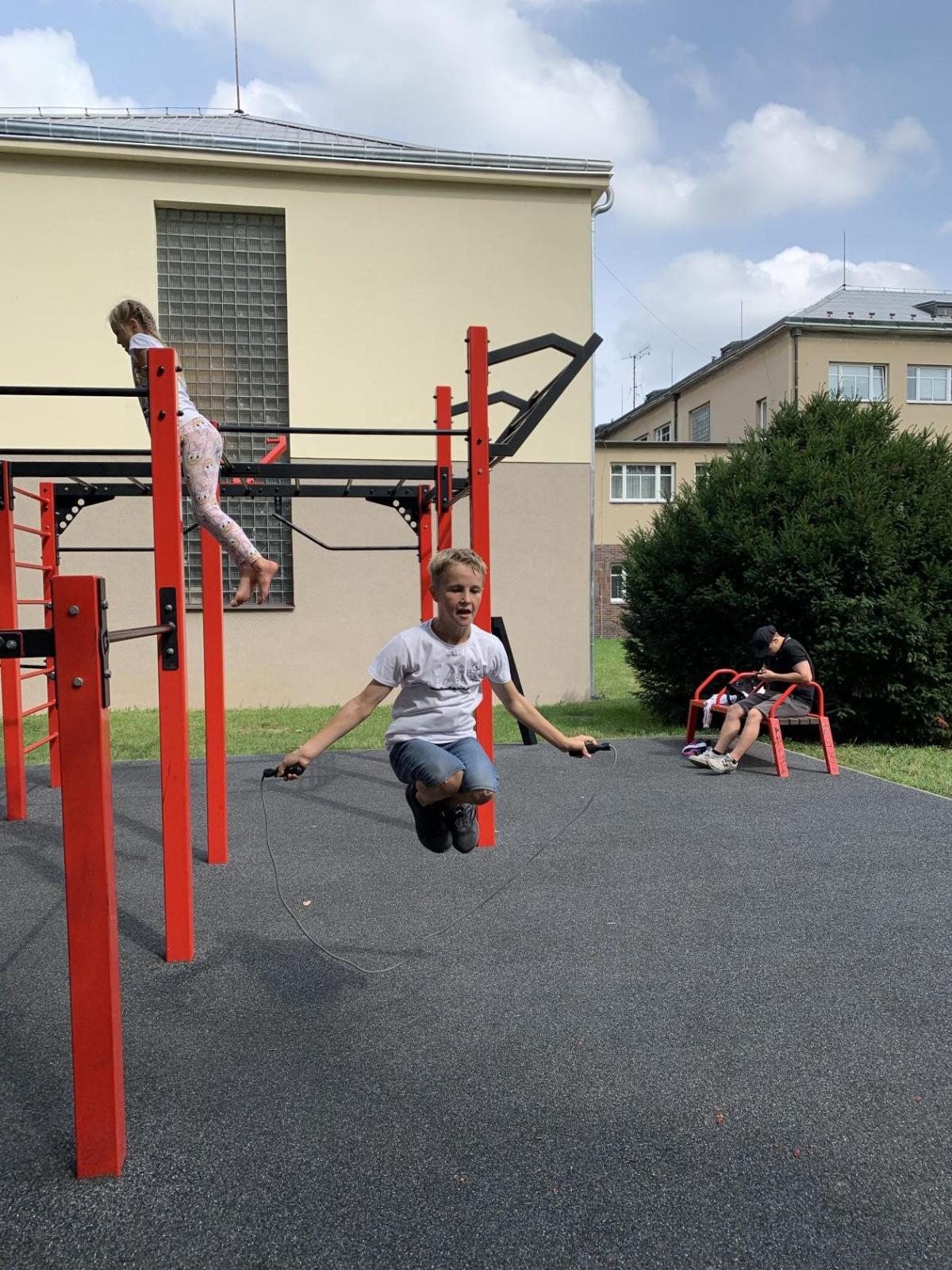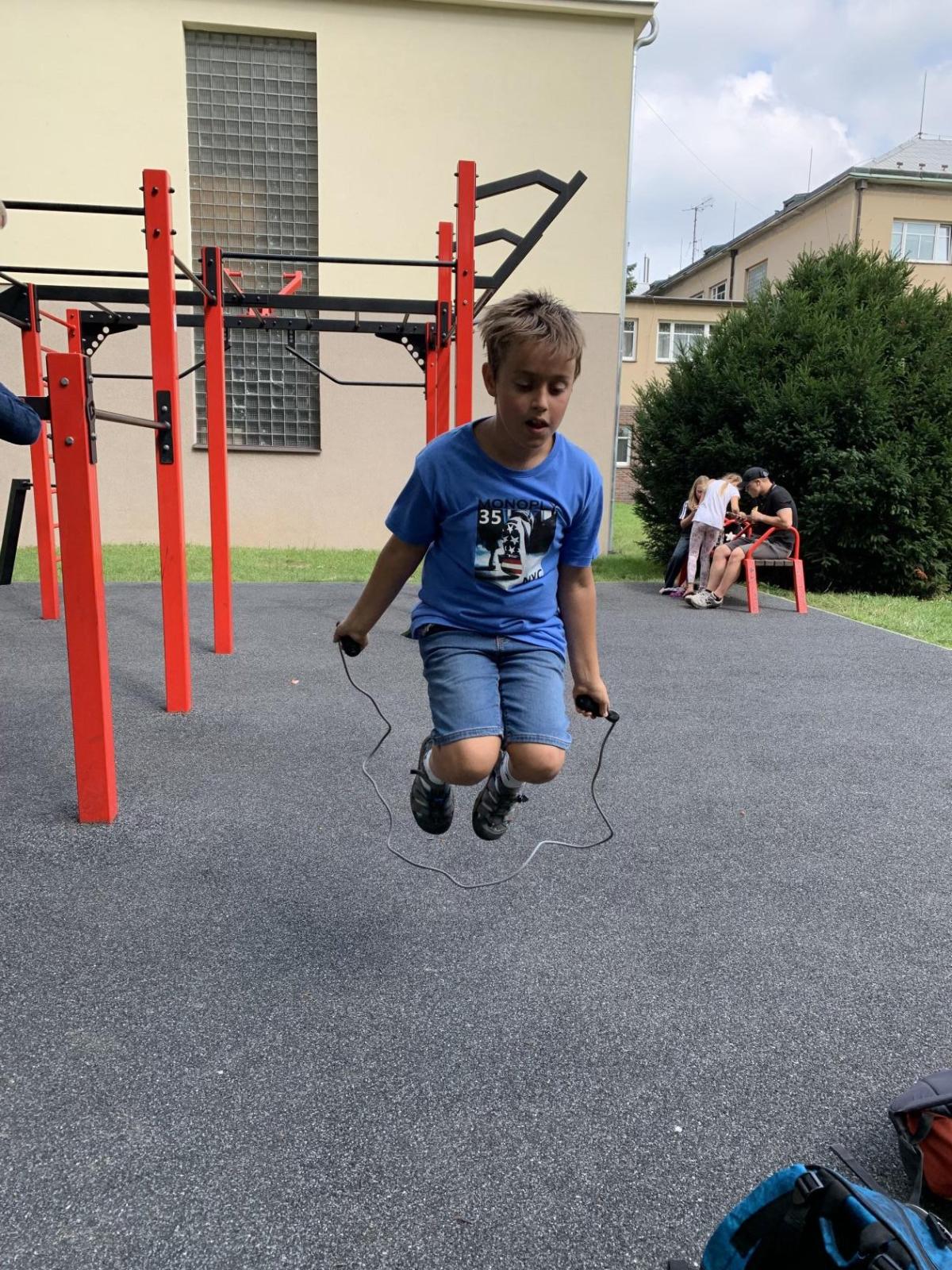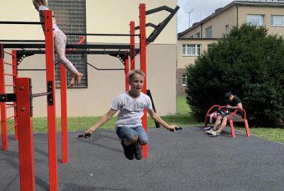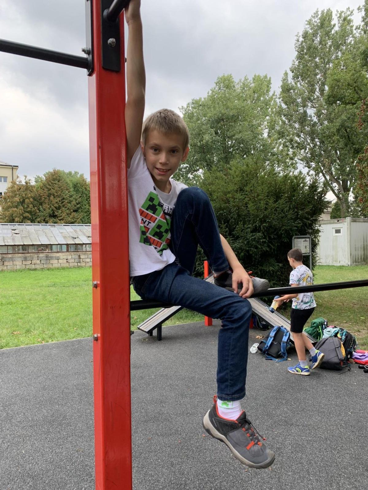Ve školní družině si společně užíváme pohyb a sport. Nejraději hrajeme míčové hry – vybíjenou, hru na třetího nebo fotbal. Rádi také chodíme na workoutové hřiště, kde se protahujeme a posilujeme.