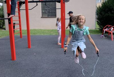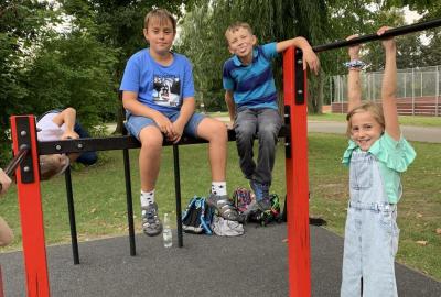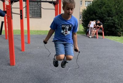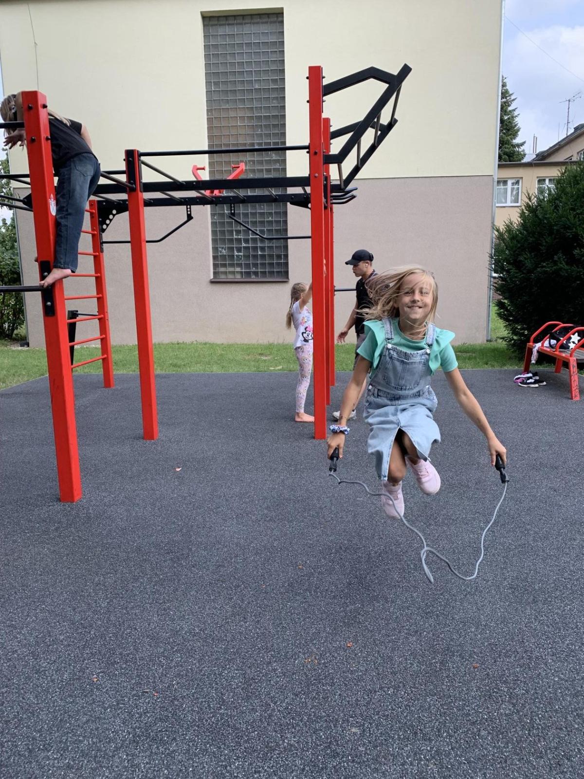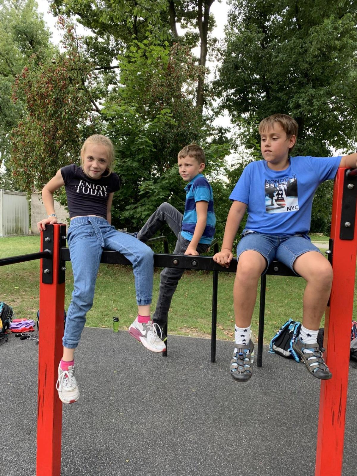 Ve školní družině si společně užíváme pohyb a sport. Nejraději hrajeme míčové hry – vybíjenou, hru na třetího nebo fotbal. Rádi také chodíme na workoutové hřiště, kde se protahujeme a posilujeme.