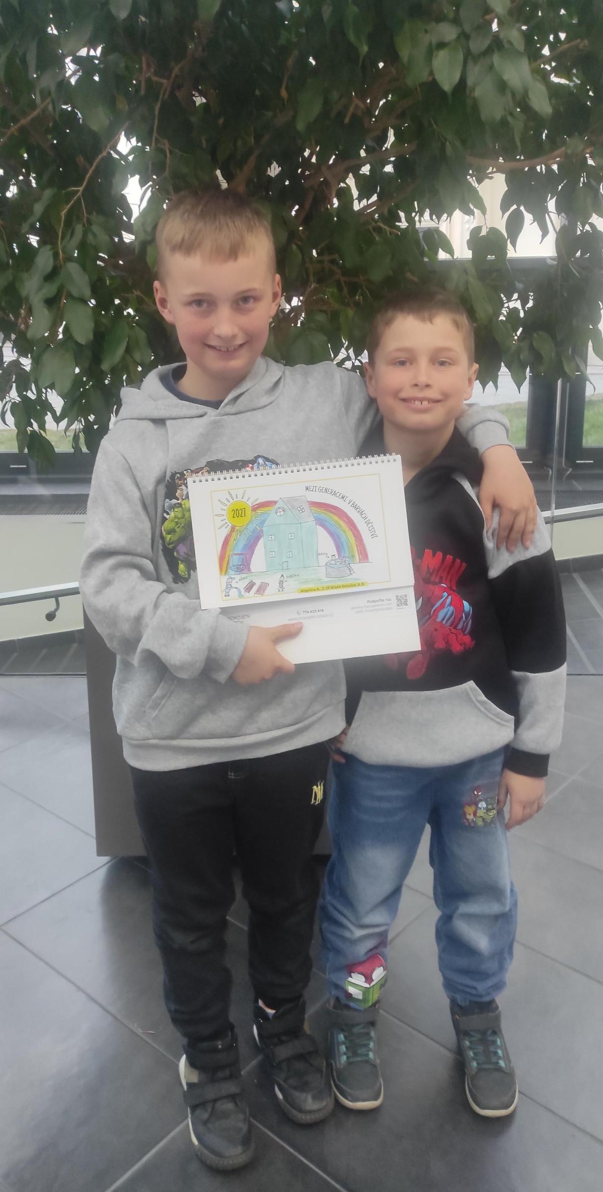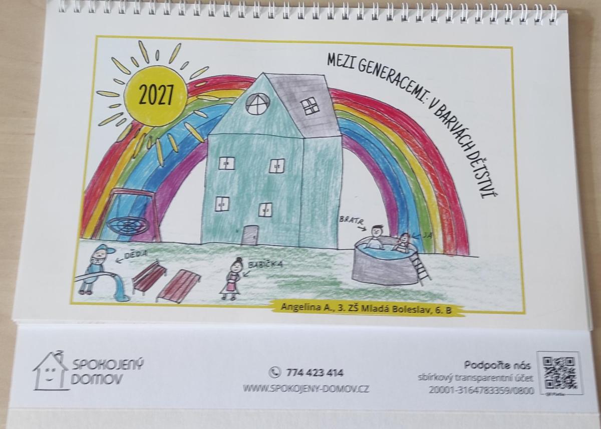 Již v loňském listopadu jsme byli pozváni do výtvarné soutěže, kterou uspořádala organizace Spokojený domov, Malyra Veselá. Úkolem bylo namalovat obrázek do kalendáře na téma Mezi generacemi: v barvách dětství - tedy o životě dětí s prarodiči. A právě včera, 16. 3., se konalo slavnostní setkání úspěšných tvůrců ve Vzdělávacím centru Na Karmeli v Mladé Boleslavi. Mezi oceněné, jejichž obrázky jsou v kalendáři pro rok 2027, patří druhačka Sofinka Zíková a čtvrťák Ondra Kopecký. Moc gratulujeme a máme velkou radost s nimi.
