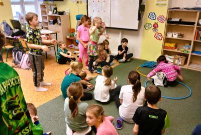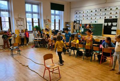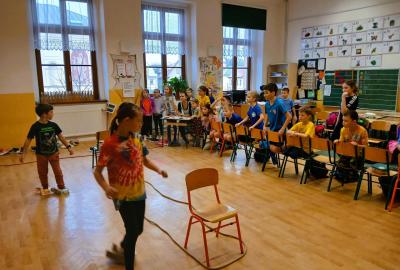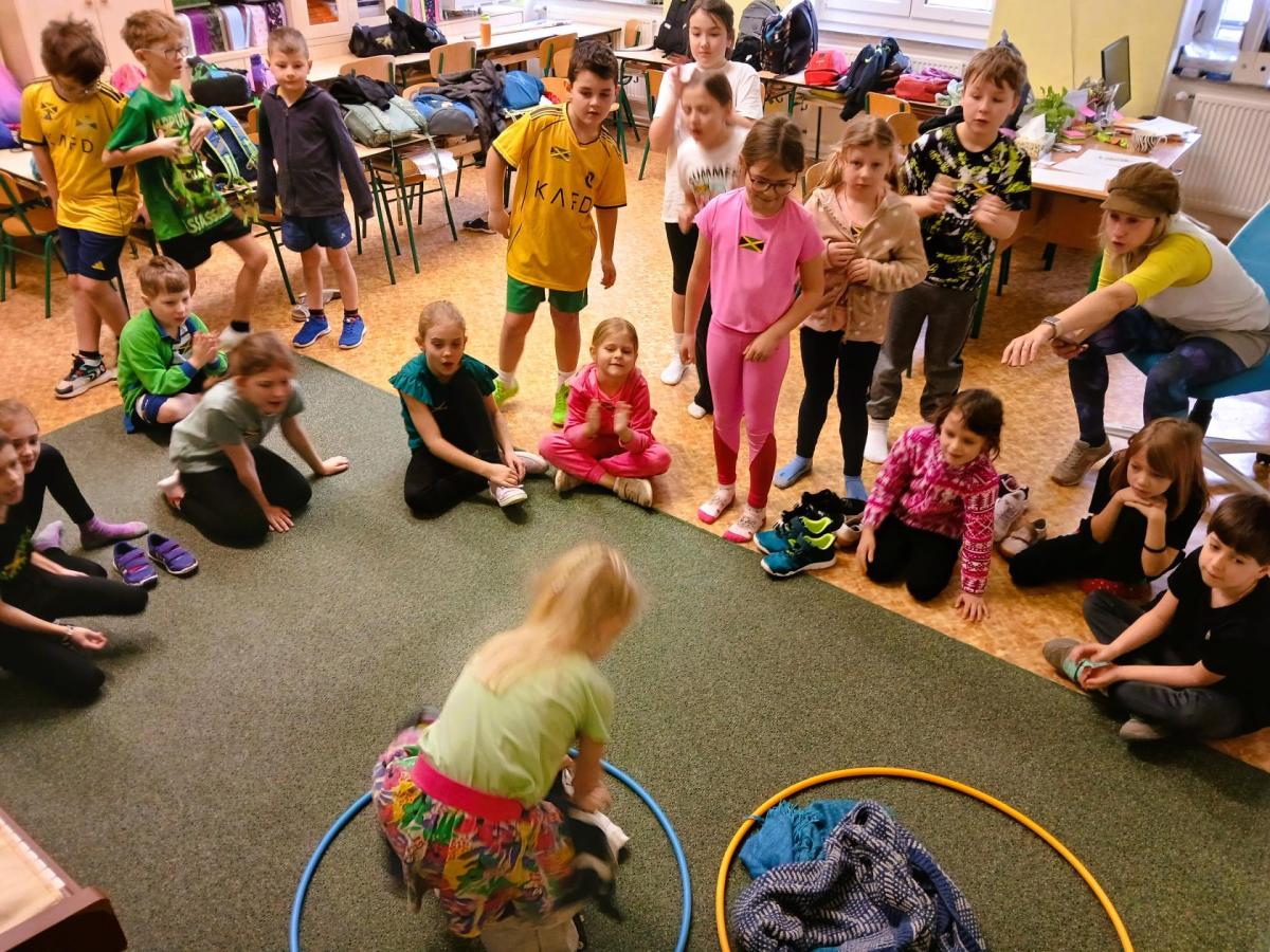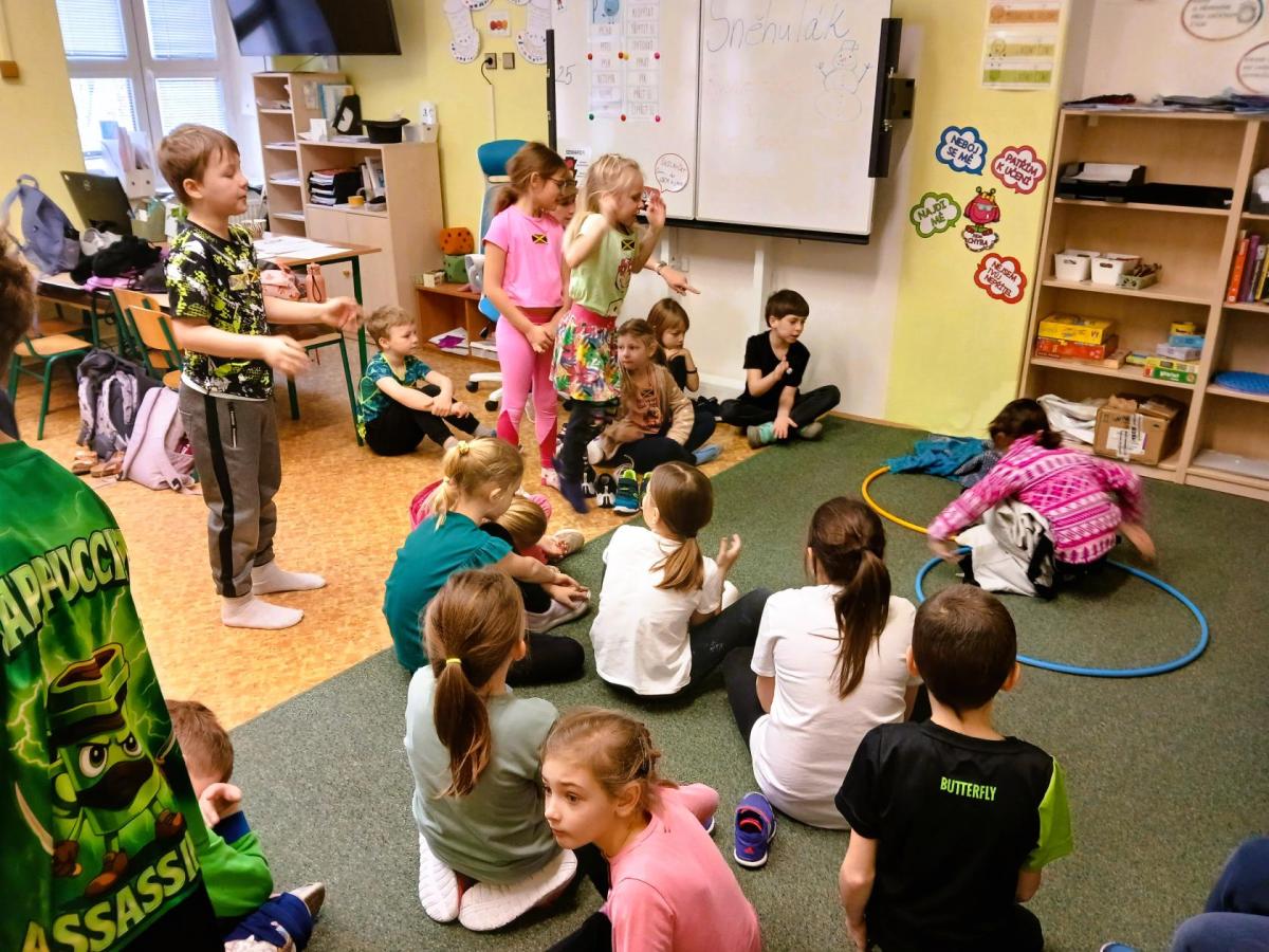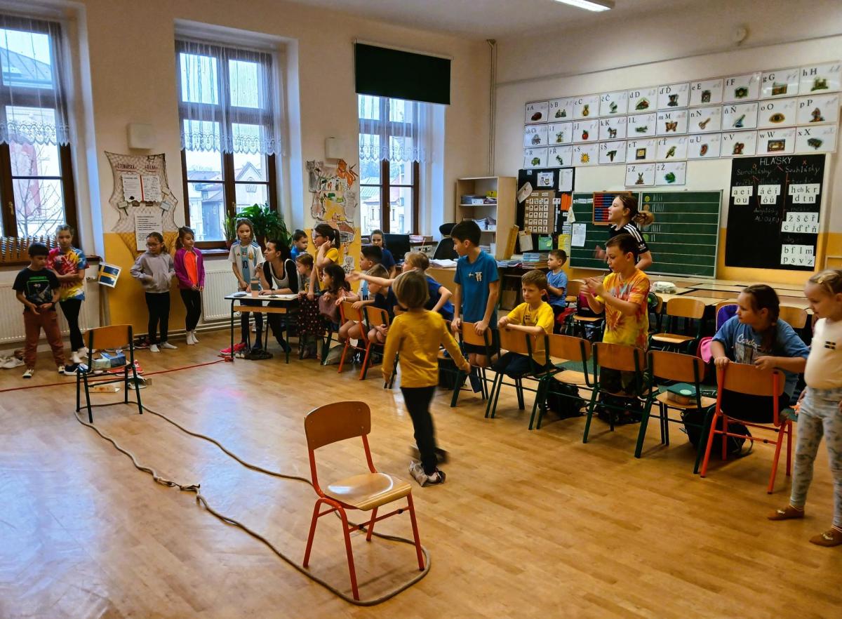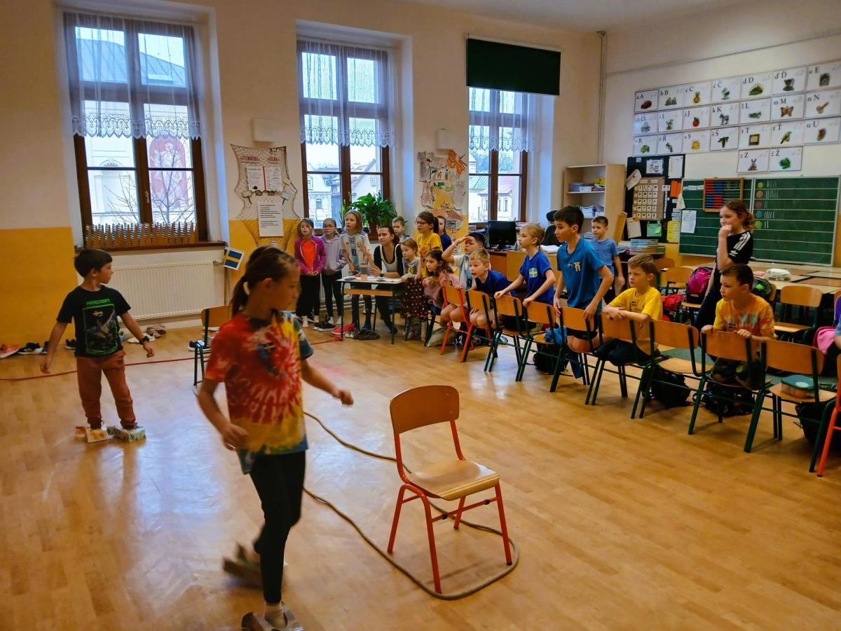 Děti soutěžily v namíchaných družstvech napříč ročníky, což se ukázalo jako skvělé rozhodnutí. Bylo radost sledovat, jak starší žáci přirozeně pomáhali mladším, povzbuzovali je a táhli celý tým kupředu.