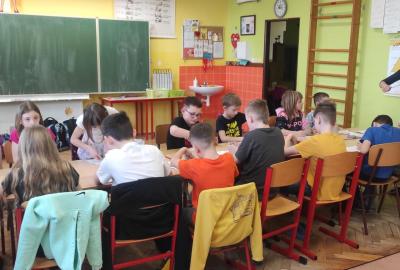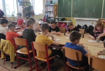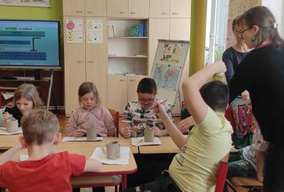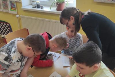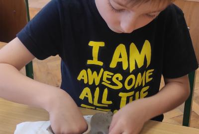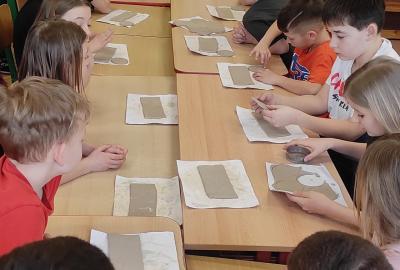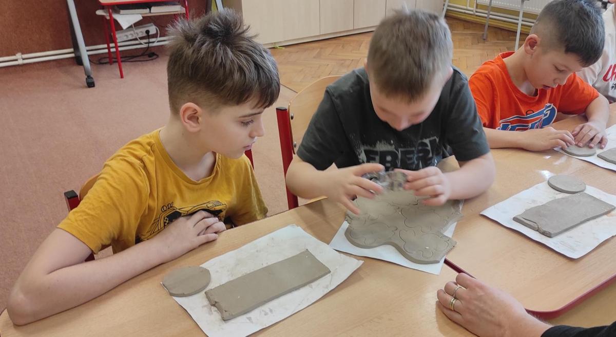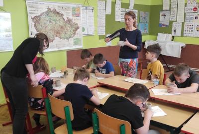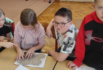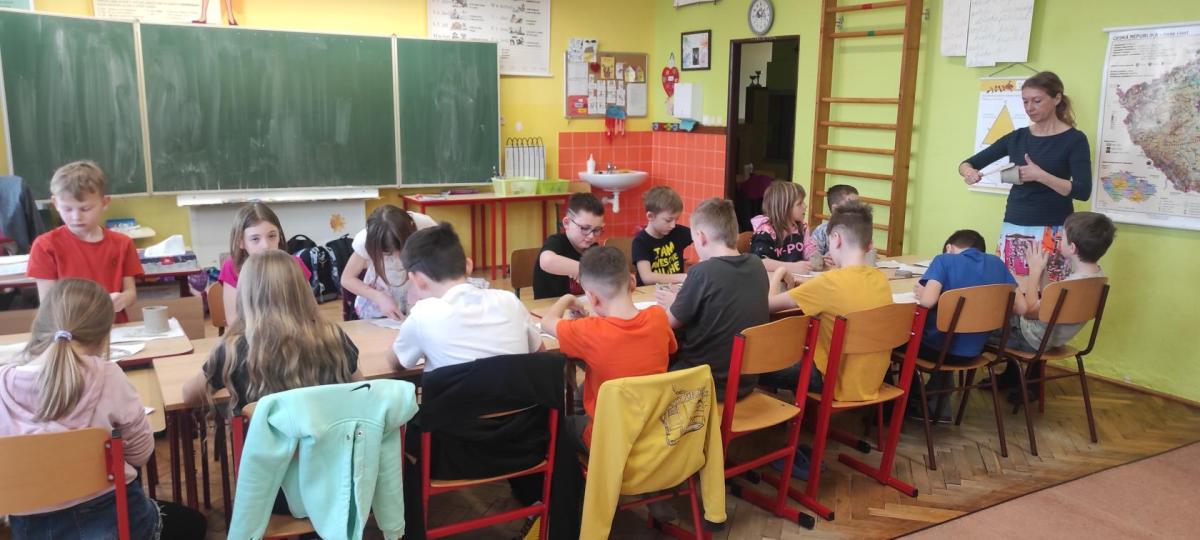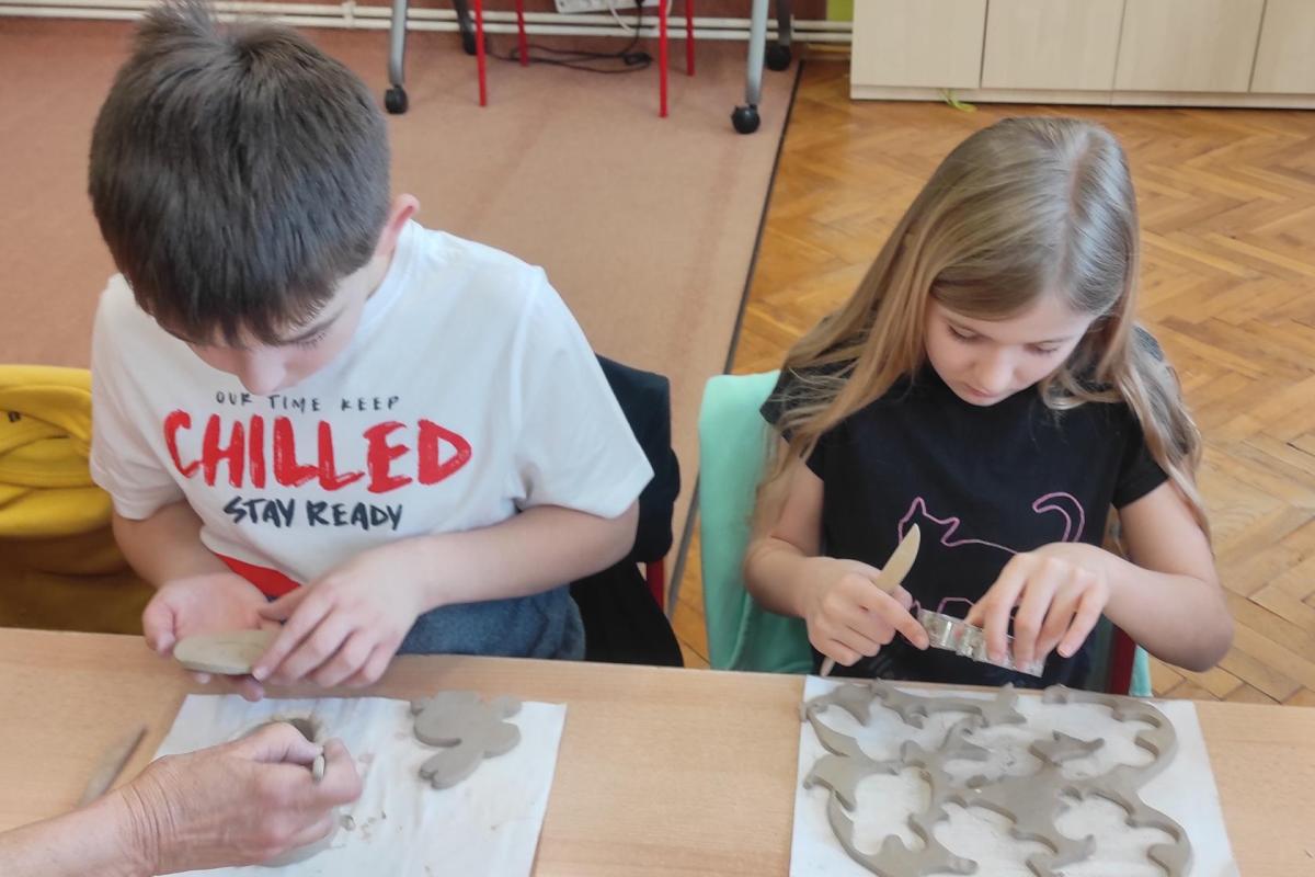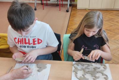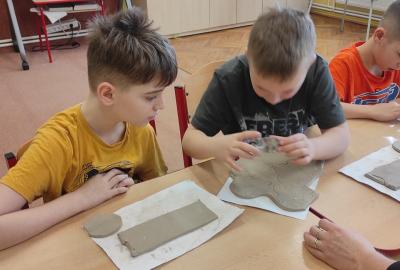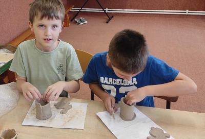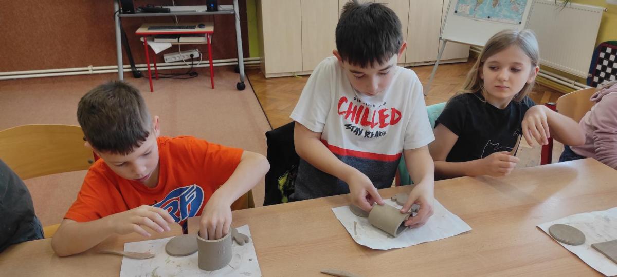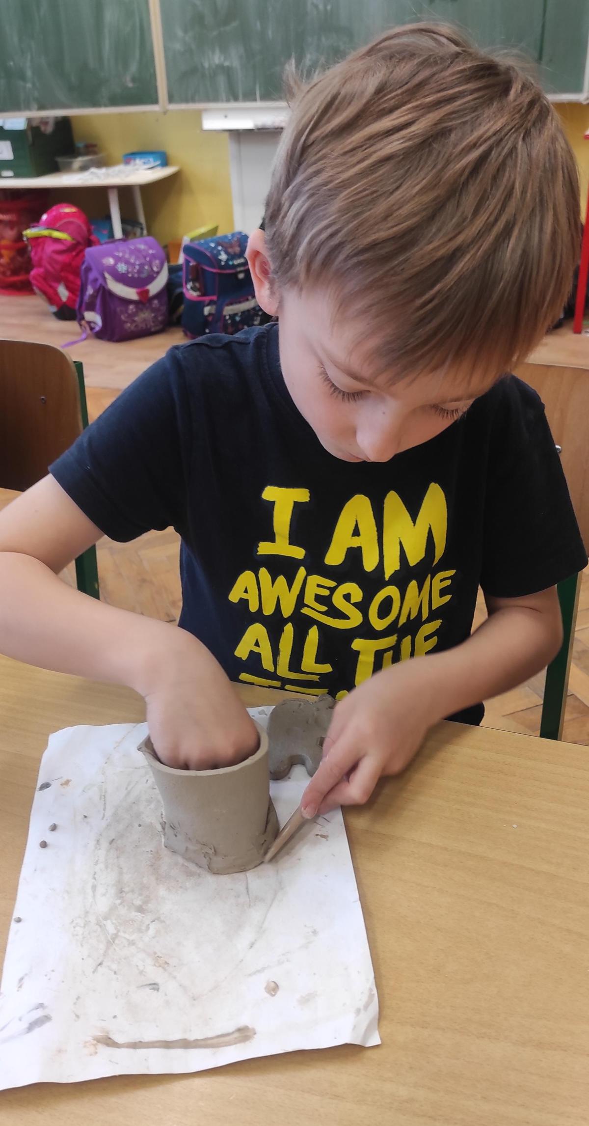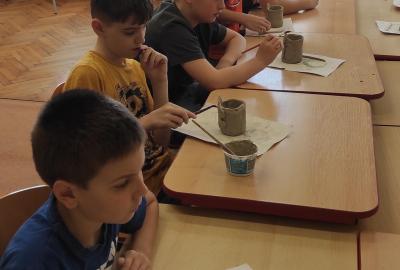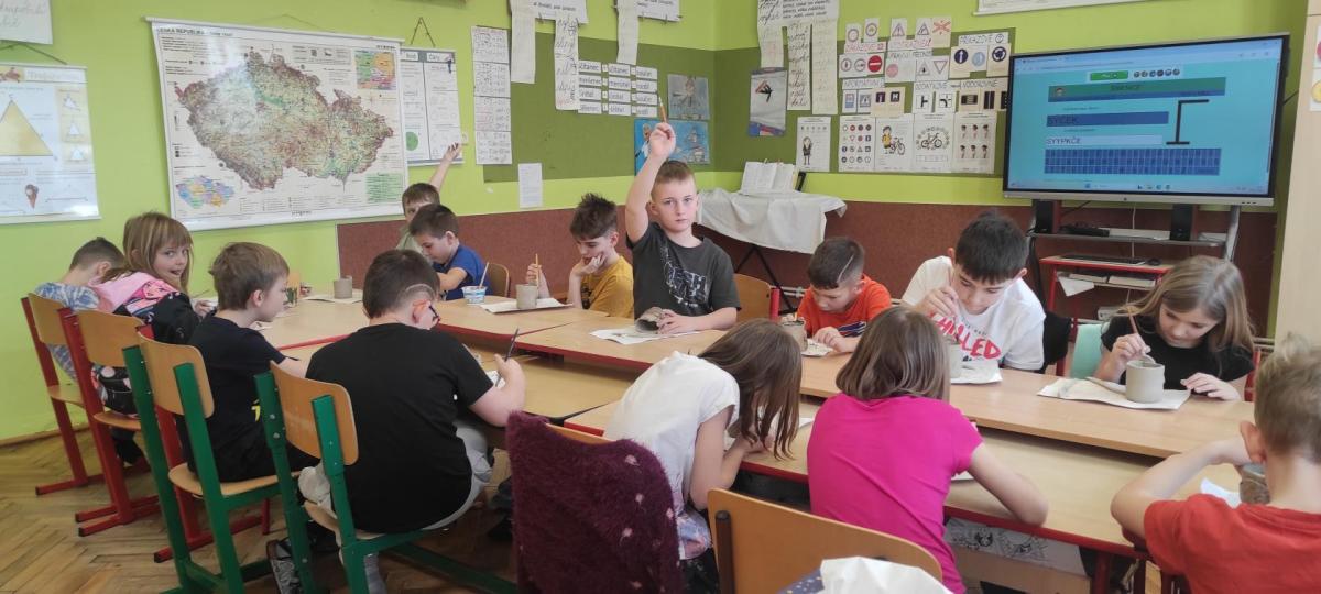 Páteční čas nám zpestřila paní Karla Rejmanová z keramického ateliéru Radost. S dětmi vytvořila vázičku k blížícím se Velikonocům.
