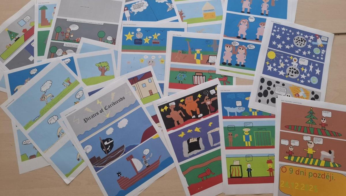 Žáci třetích ročníků, kteří ve škole na náměstí chodí každé pondělí na počítačový kroužek, završili první pololetí výrobou vlastních komiksů.
