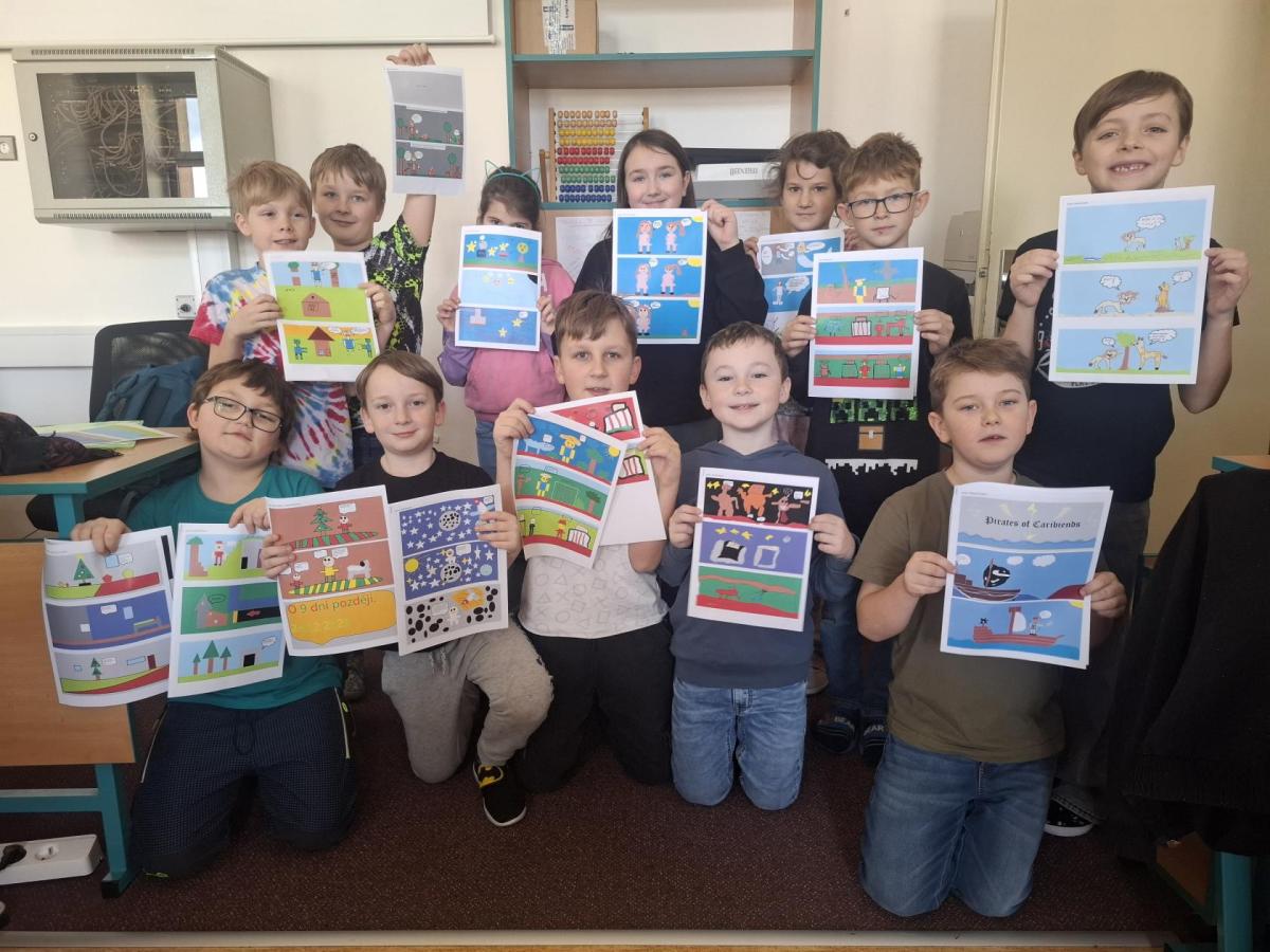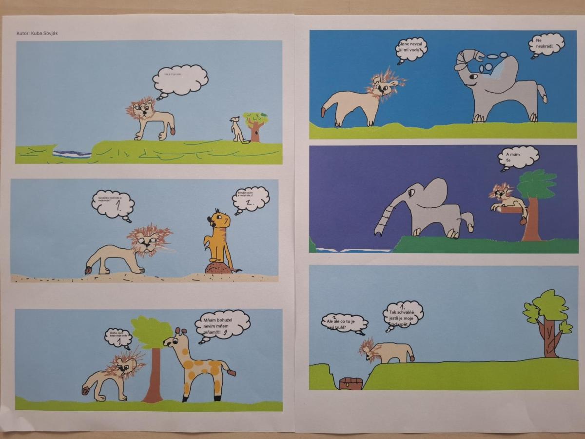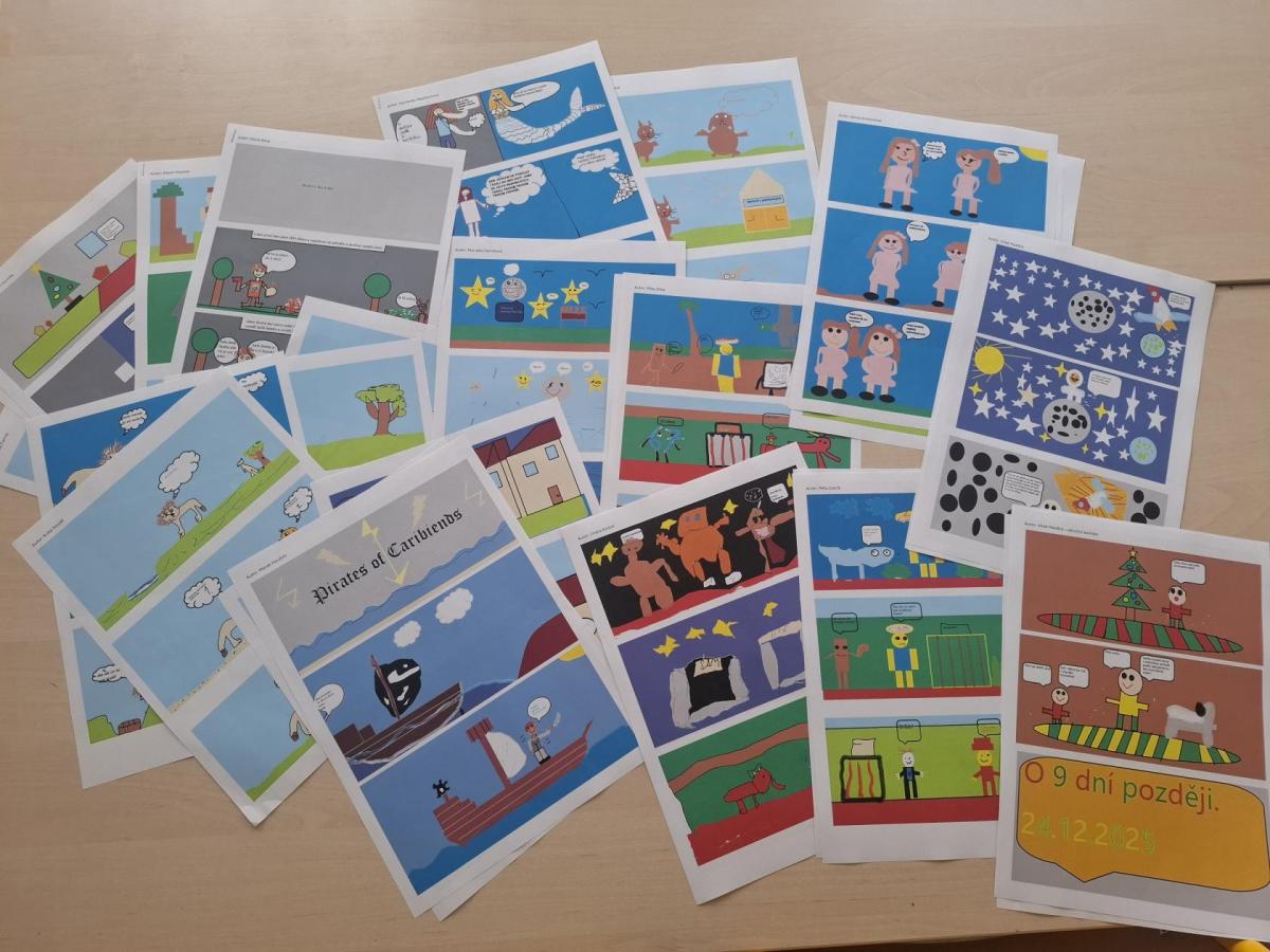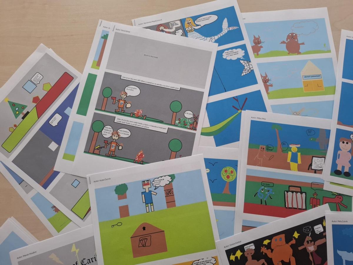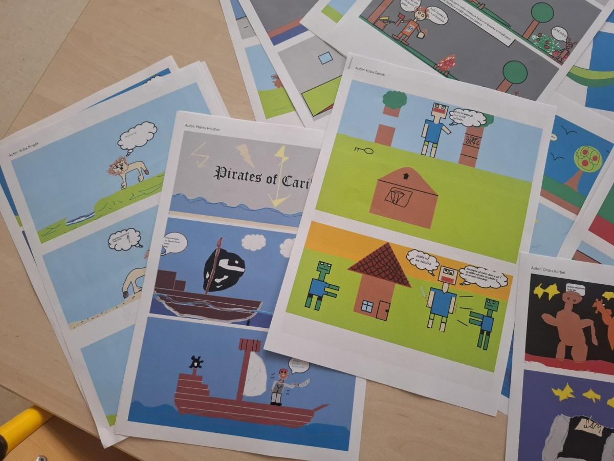 Prokázali tak, že už bravurně ovládají myš i klávesnici. Jejich komiksy jsou krásně barevné a vyprávějí nejrůznější příběhy, které si žáci sami vymysleli. Zadání splnili na jedničku!