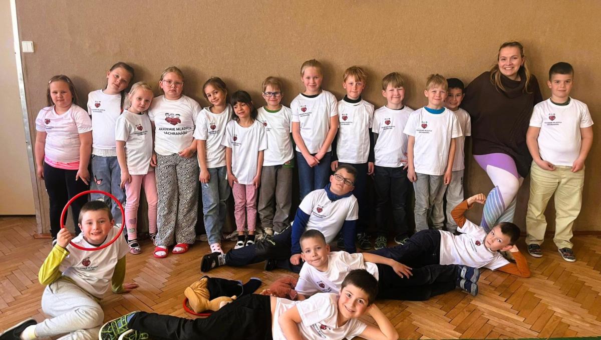 Děti si nejprve vyrobily vlastní záchranářská trička, aby bylo na první pohled jasné, kdo je připraven pomáhat. Poté jsme se pustili do poznávání lidského těla a základních zdravotních úkonů.