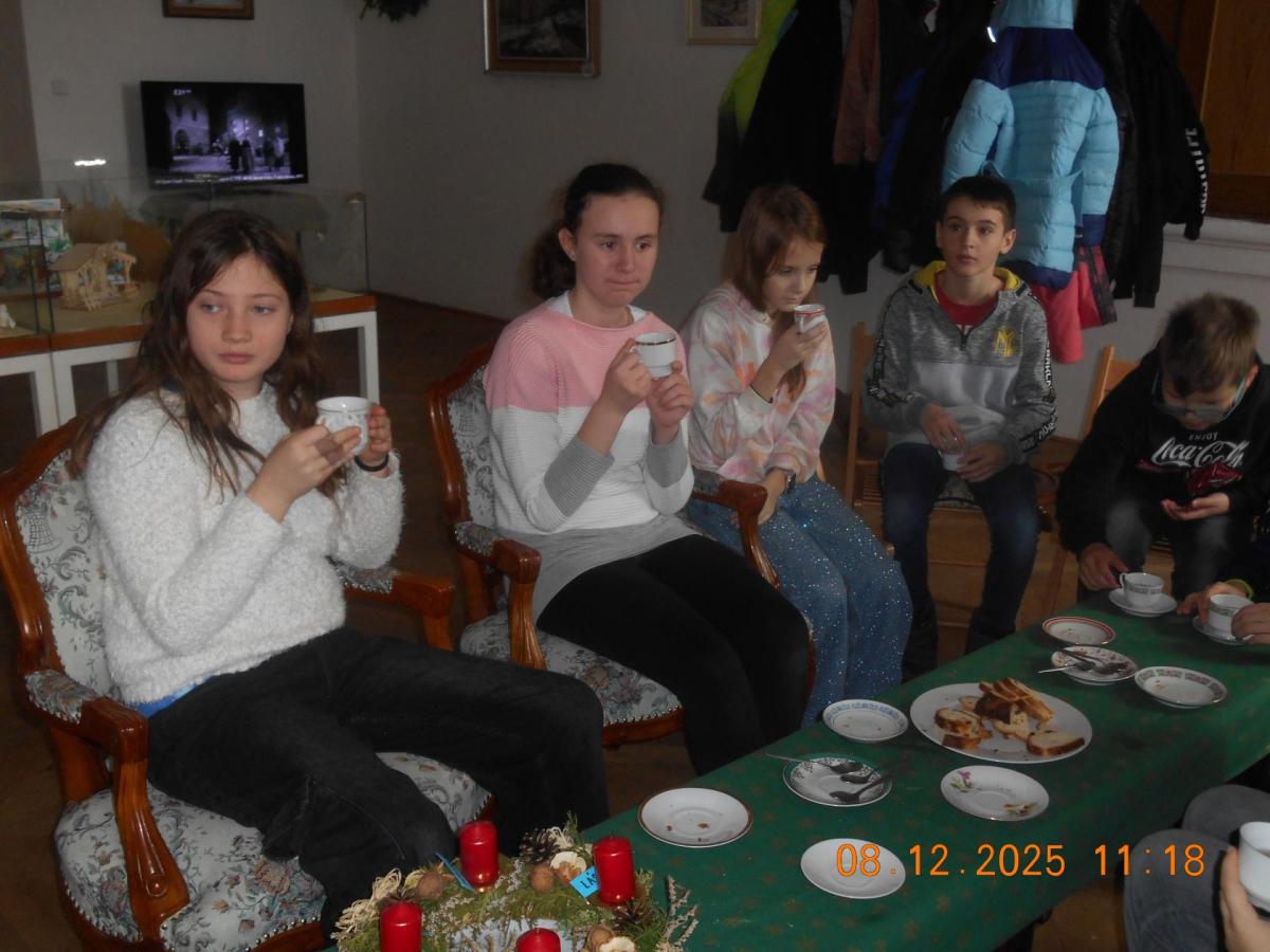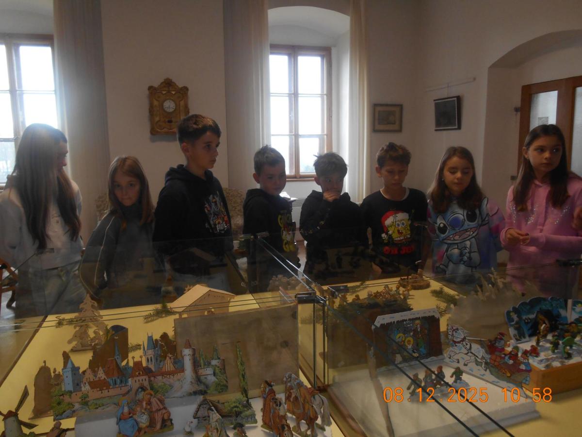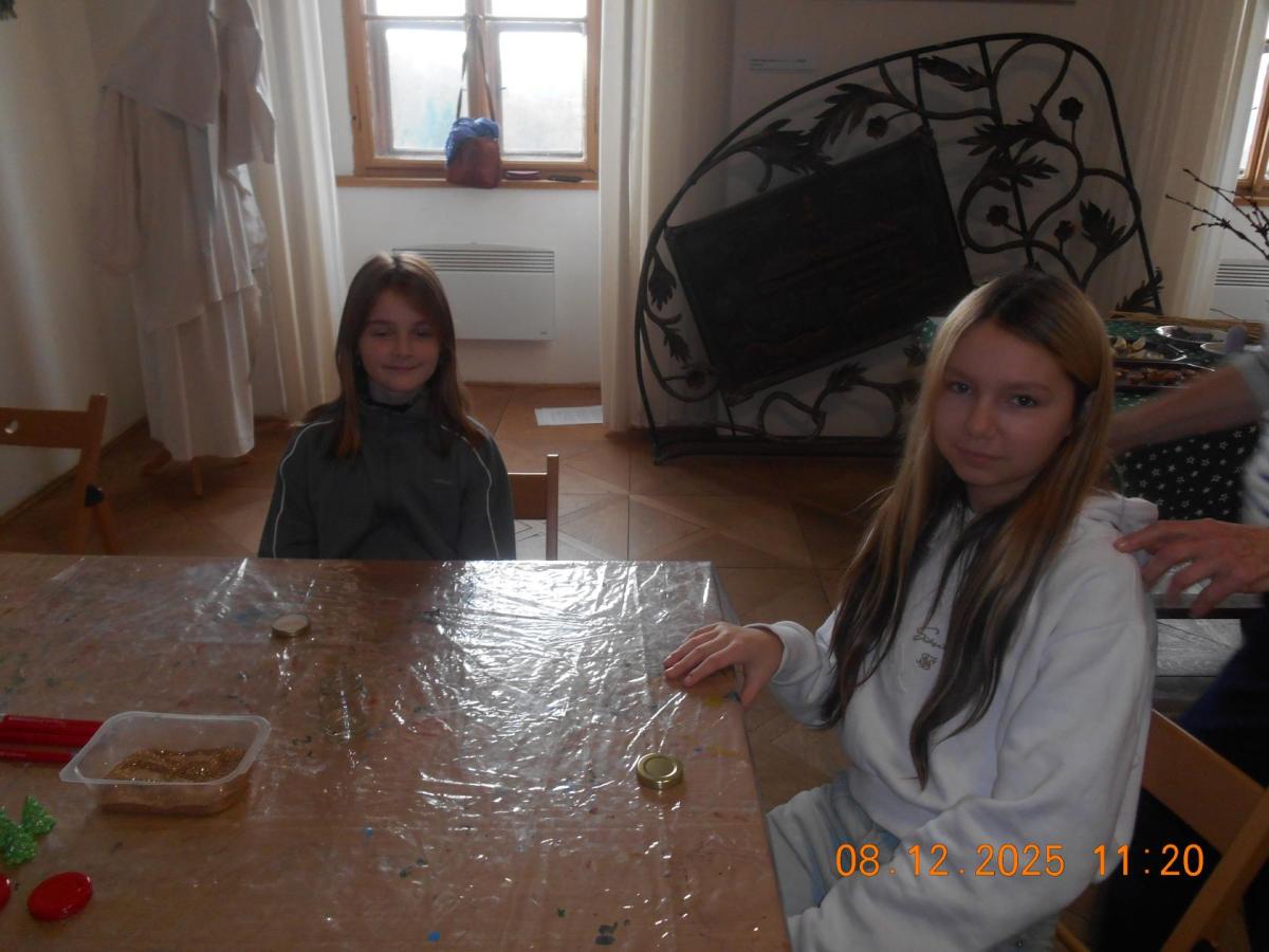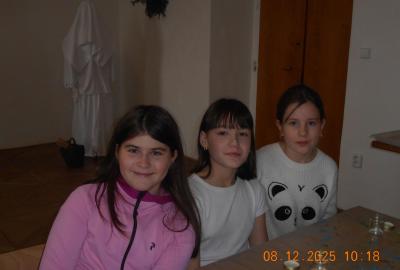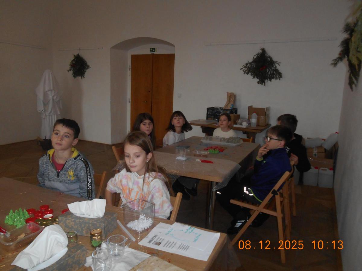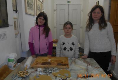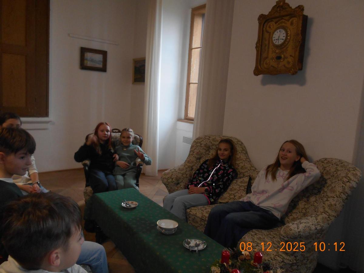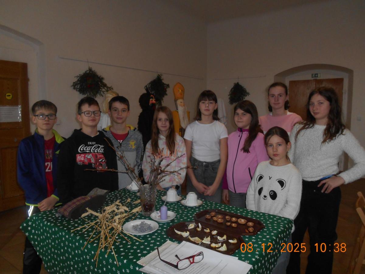 Už ve škole jsme se rozdělili do tří skupin. V muzeu se nás ujaly paní učitelky, ktere se nám na jednotlivých stanovištích velmi trpělivě a ochotně věnovaly. V improvizované " kuchyňce " jsme pekli linecké cukroví. Všichni jsme pečlivě vykrajovali různé tvary cukrovíček. Prostory muzea byly provoněny omamnou vůní a my jsme se těšili, až bude dopečeno. Po vychladnutí jsme konečně mohli naše sladkosti ochutnat. Také jsme se naučili zabalit kostku cukru do hedvábného papíru tak, že vypadala jako opravdový čokoládový bonbon na stromeček. Další místo bylo pro změnu provoněno nádhernou vůní vánočního čaje. Na stolku na nás čekala vánočka. My jsme se způsobně usadili na pohovku a do křesílek, upíjeli jsme čaj a povídali si o tom, jak lidé dříve trávili Vánoce. Celá místnost byla plná krásných vánočních betlémů vyrobených z různých materiálů. V údivu jsme žasli nad zručností a umem našich předků. Také jsme se seznámili s postavou Jiřího Ignáce Linky z Bakova, jehož vánoční hudba navodila nádhernou vánoční atmosféru. V poslední místnosti byly kromě pracovních stolů i postavy ve skutečné velikosti, které jsou spojené s adventem. Každý z nás si vyrobil vánoční " sněžítko " a vyzkoušeli jsme si i některé vánoční zvyky. Advent v muzeu jsme si moc užili a děkujeme všem paním učitelkám, které tento čas trávily s námi. KRÁSNÉ VÁNOCE VŠEM