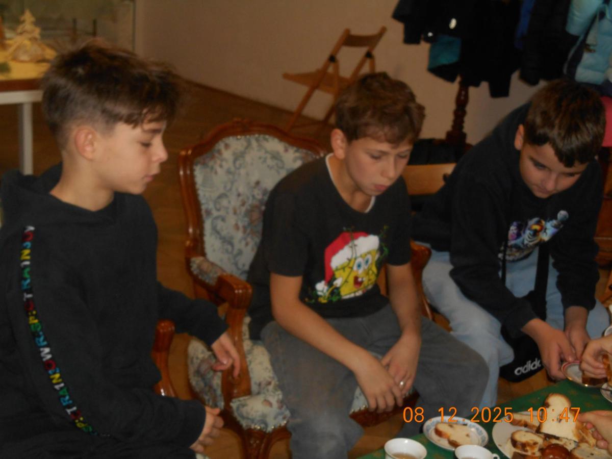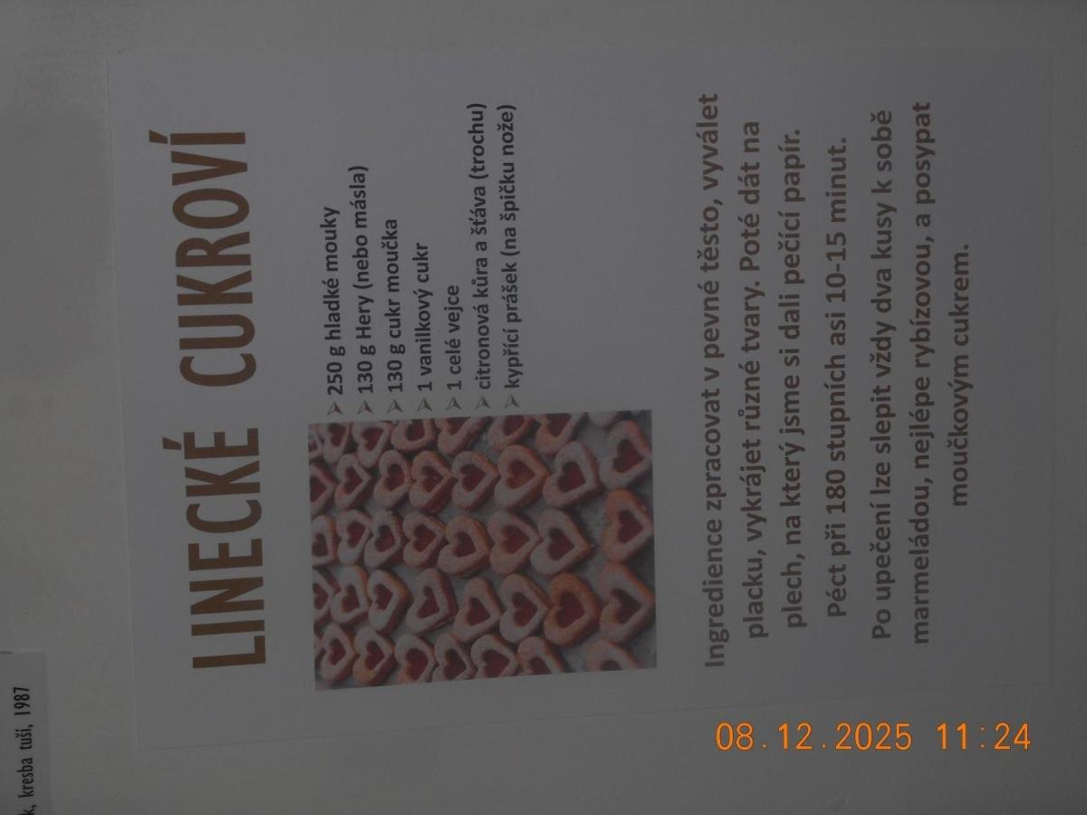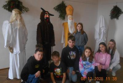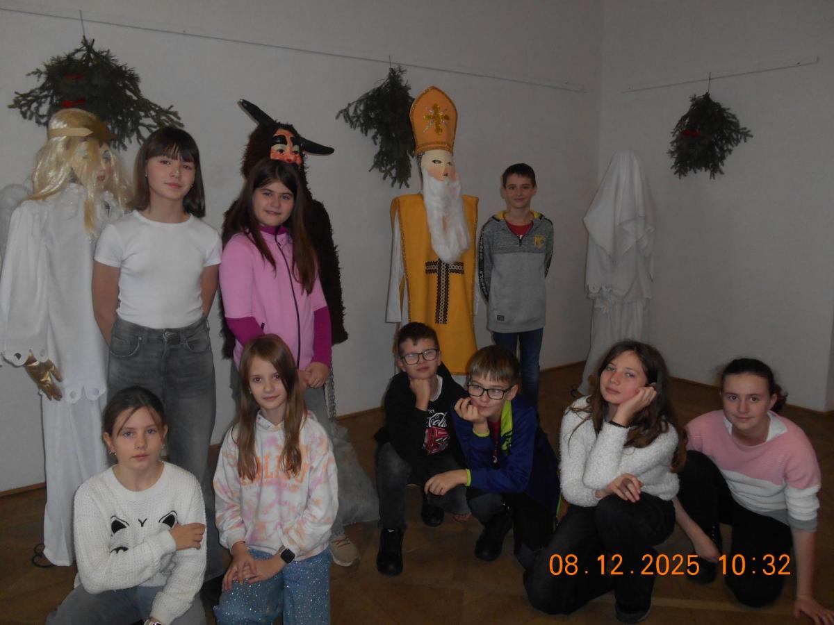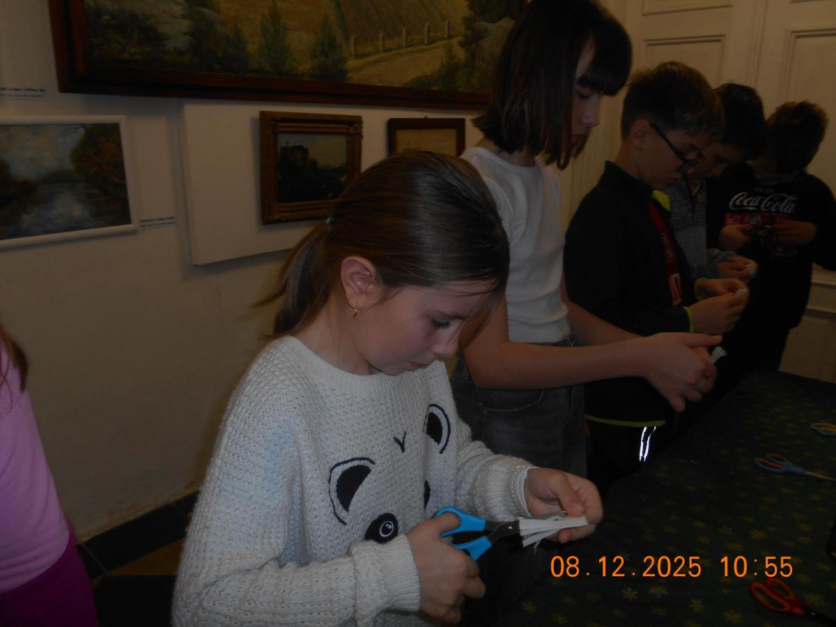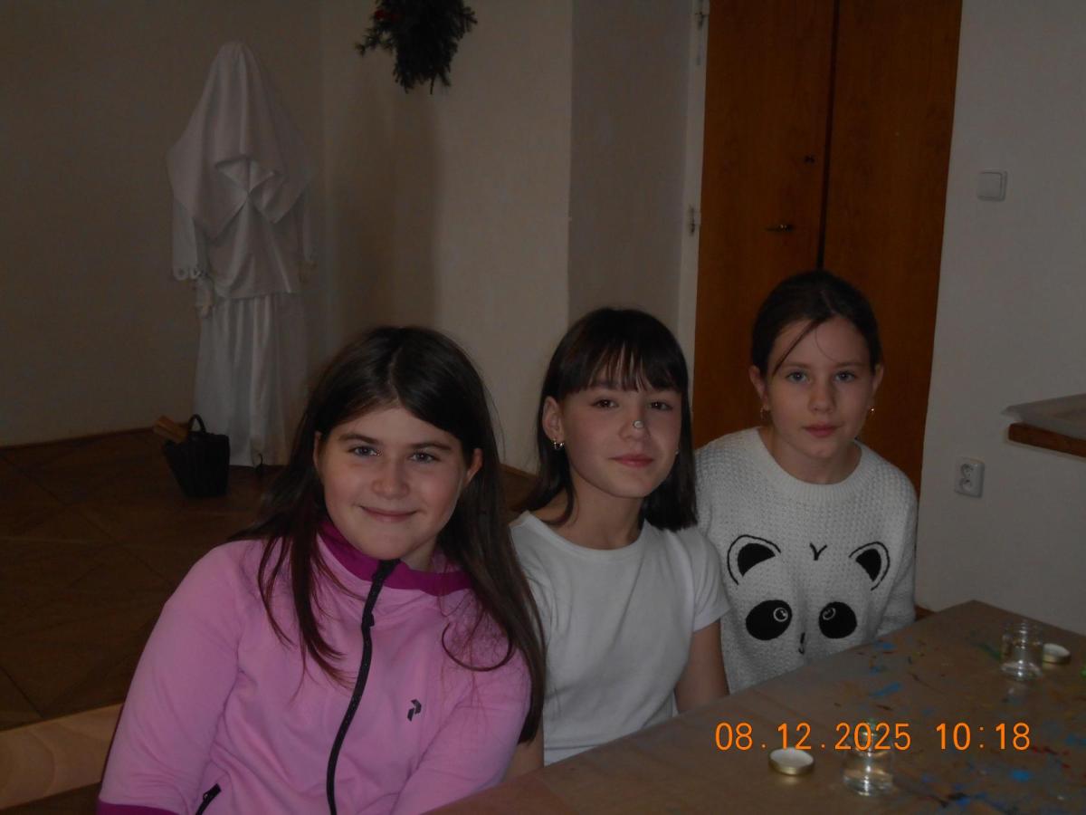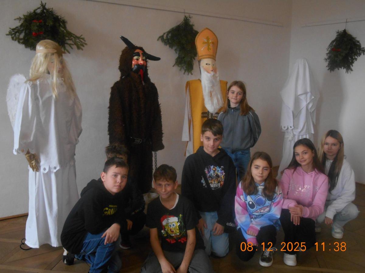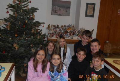 Už ve škole jsme se rozdělili do tří skupin. V muzeu se nás ujaly paní učitelky, ktere se nám na jednotlivých stanovištích velmi trpělivě a ochotně věnovaly. V improvizované " kuchyňce " jsme pekli linecké cukroví. Všichni jsme pečlivě vykrajovali různé tvary cukrovíček. Prostory muzea byly provoněny omamnou vůní a my jsme se těšili, až bude dopečeno. Po vychladnutí jsme konečně mohli naše sladkosti ochutnat. Také jsme se naučili zabalit kostku cukru do hedvábného papíru tak, že vypadala jako opravdový čokoládový bonbon na stromeček. Další místo bylo pro změnu provoněno nádhernou vůní vánočního čaje. Na stolku na nás čekala vánočka. My jsme se způsobně usadili na pohovku a do křesílek, upíjeli jsme čaj a povídali si o tom, jak lidé dříve trávili Vánoce. Celá místnost byla plná krásných vánočních betlémů vyrobených z různých materiálů. V údivu jsme žasli nad zručností a umem našich předků. Také jsme se seznámili s postavou Jiřího Ignáce Linky z Bakova, jehož vánoční hudba navodila nádhernou vánoční atmosféru. V poslední místnosti byly kromě pracovních stolů i postavy ve skutečné velikosti, které jsou spojené s adventem. Každý z nás si vyrobil vánoční " sněžítko " a vyzkoušeli jsme si i některé vánoční zvyky. Advent v muzeu jsme si moc užili a děkujeme všem paním učitelkám, které tento čas trávily s námi. KRÁSNÉ VÁNOCE VŠEM