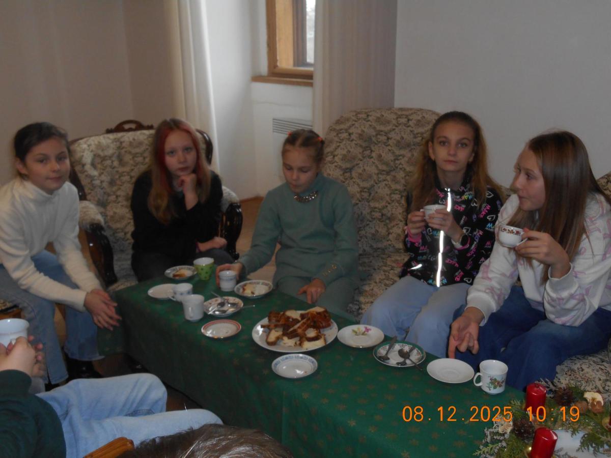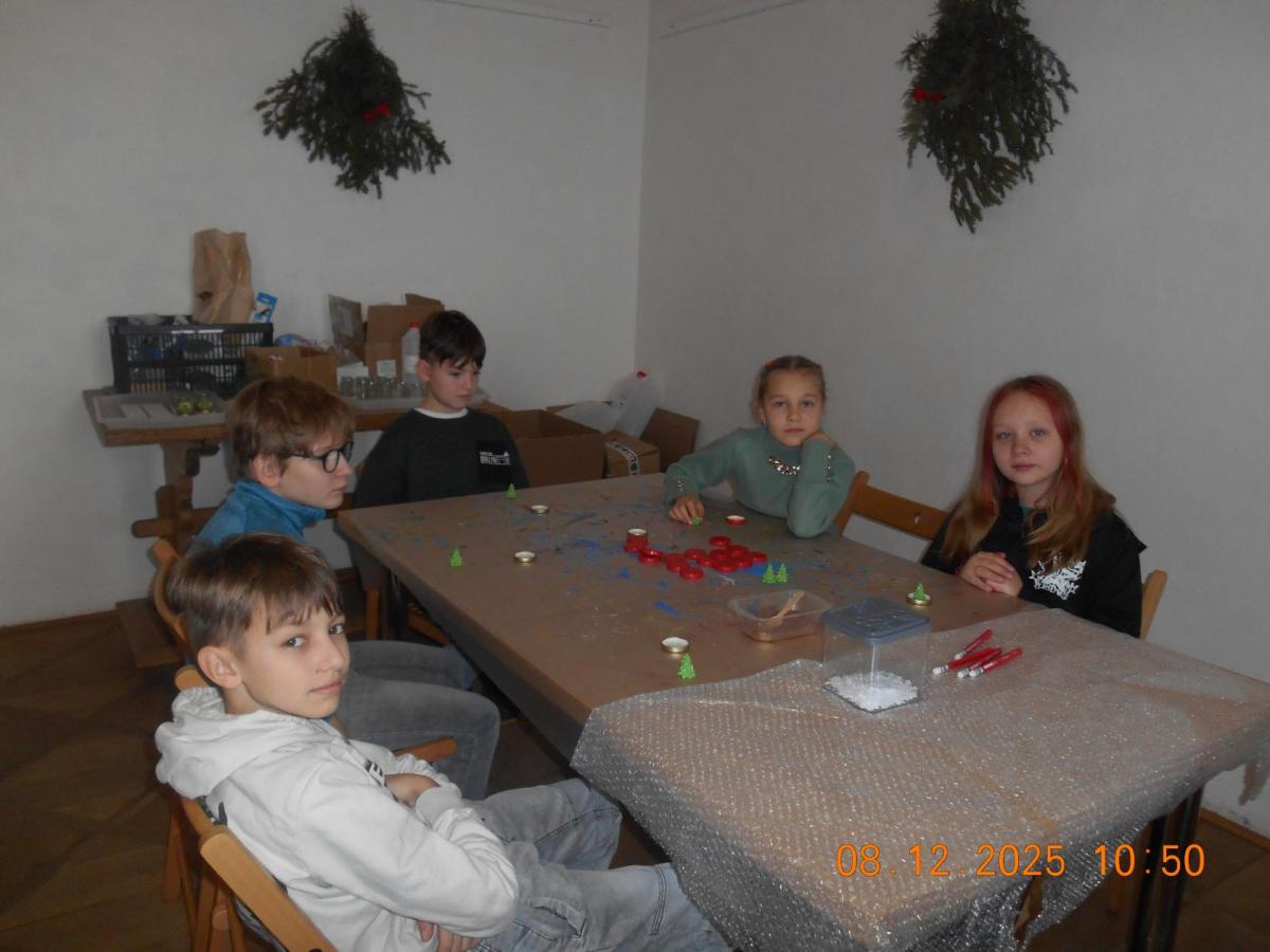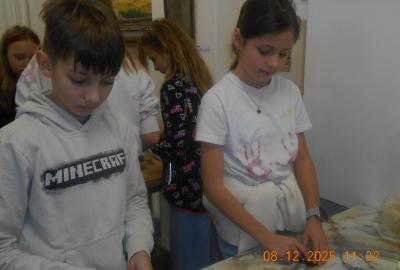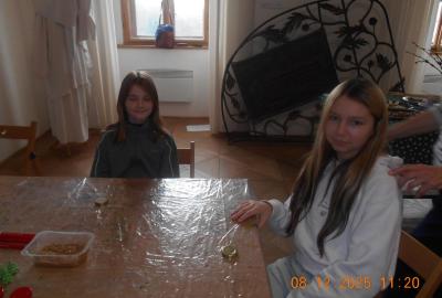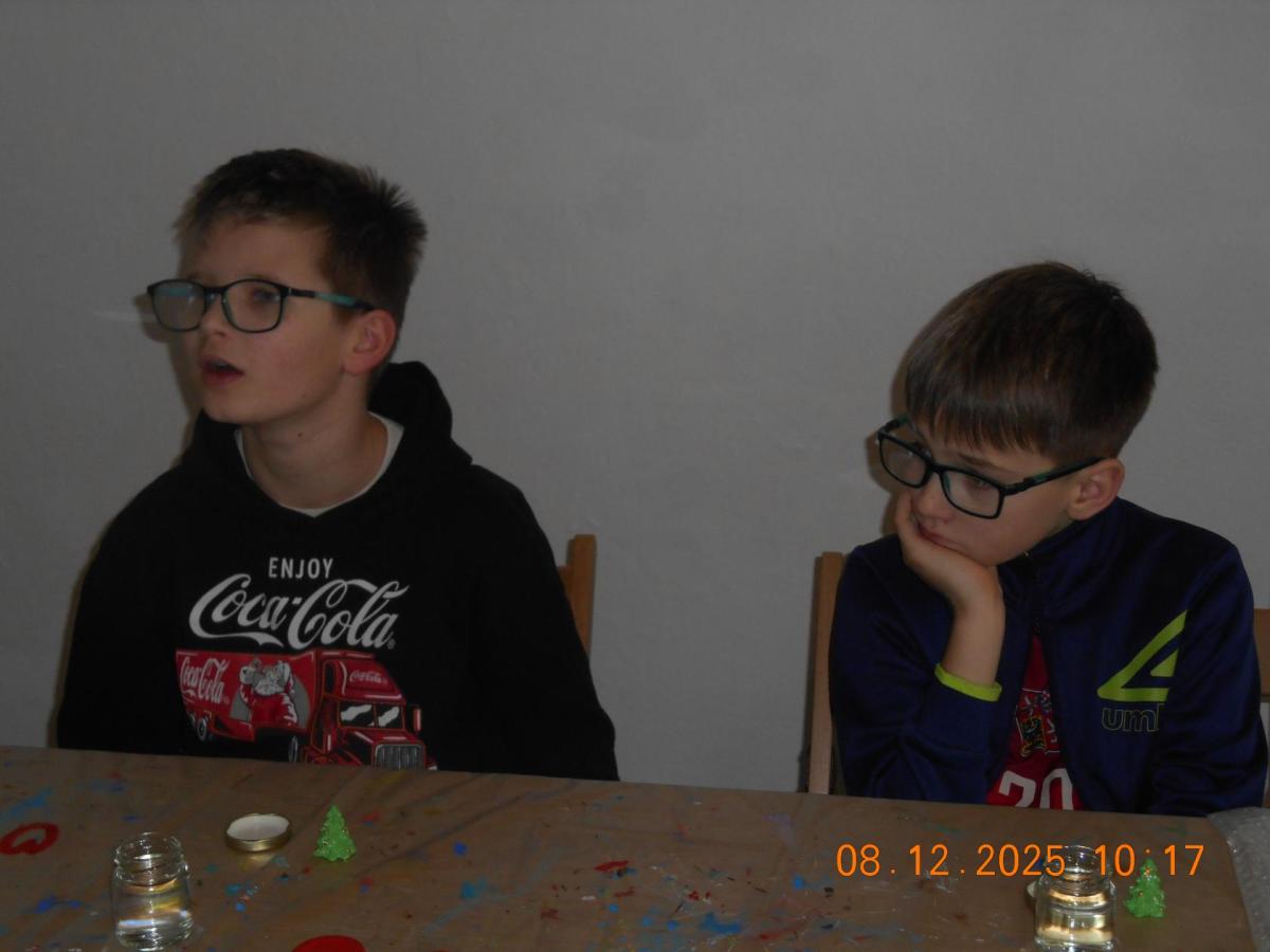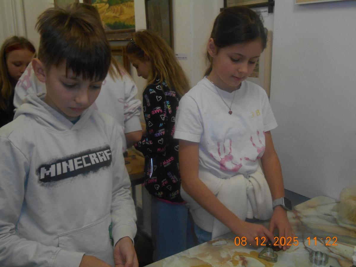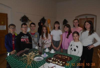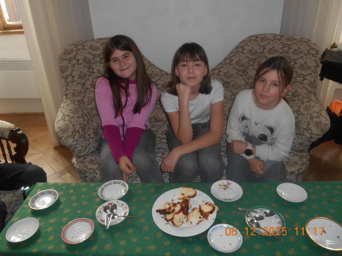 Už ve škole jsme se rozdělili do tří skupin. V muzeu se nás ujaly paní učitelky, ktere se nám na jednotlivých stanovištích velmi trpělivě a ochotně věnovaly. V improvizované " kuchyňce " jsme pekli linecké cukroví. Všichni jsme pečlivě vykrajovali různé tvary cukrovíček. Prostory muzea byly provoněny omamnou vůní a my jsme se těšili, až bude dopečeno. Po vychladnutí jsme konečně mohli naše sladkosti ochutnat. Také jsme se naučili zabalit kostku cukru do hedvábného papíru tak, že vypadala jako opravdový čokoládový bonbon na stromeček. Další místo bylo pro změnu provoněno nádhernou vůní vánočního čaje. Na stolku na nás čekala vánočka. My jsme se způsobně usadili na pohovku a do křesílek, upíjeli jsme čaj a povídali si o tom, jak lidé dříve trávili Vánoce. Celá místnost byla plná krásných vánočních betlémů vyrobených z různých materiálů. V údivu jsme žasli nad zručností a umem našich předků. Také jsme se seznámili s postavou Jiřího Ignáce Linky z Bakova, jehož vánoční hudba navodila nádhernou vánoční atmosféru. V poslední místnosti byly kromě pracovních stolů i postavy ve skutečné velikosti, které jsou spojené s adventem. Každý z nás si vyrobil vánoční " sněžítko " a vyzkoušeli jsme si i některé vánoční zvyky. Advent v muzeu jsme si moc užili a děkujeme všem paním učitelkám, které tento čas trávily s námi. KRÁSNÉ VÁNOCE VŠEM