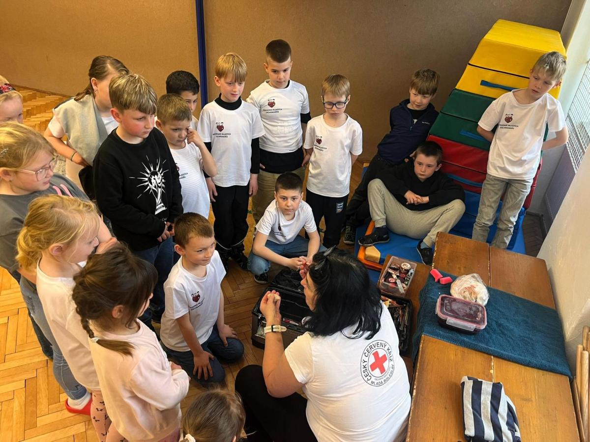 Velké poděkování patří Českému červenému kříži za odborné vedení, ochotu a skvělý přístup k dětem. Velmi si vážíme jejich návštěvy i cenných zkušeností, které s námi sdíleli.