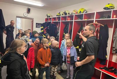 Velké poděkování patří především panu Vrkoslavovi za ochotu, vstřícnost a zajímavý výklad, stejně jako celému sboru dobrovolných hasičů za milé přijetí a čas věnovaný dětem.
