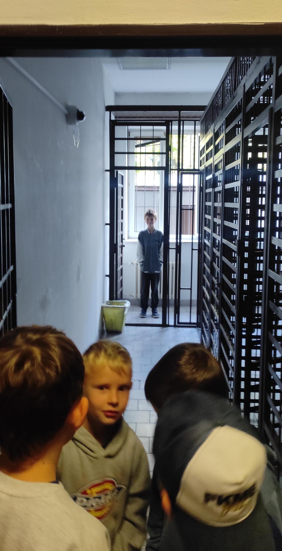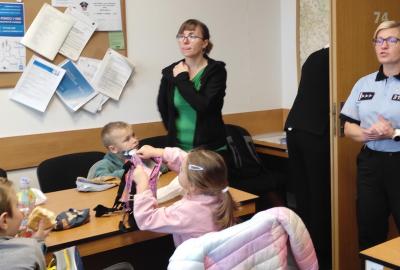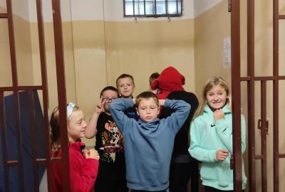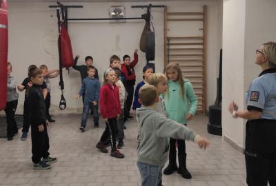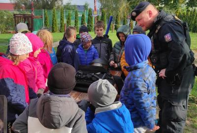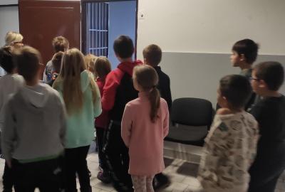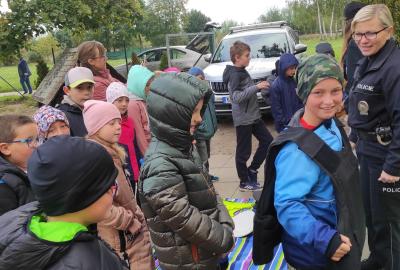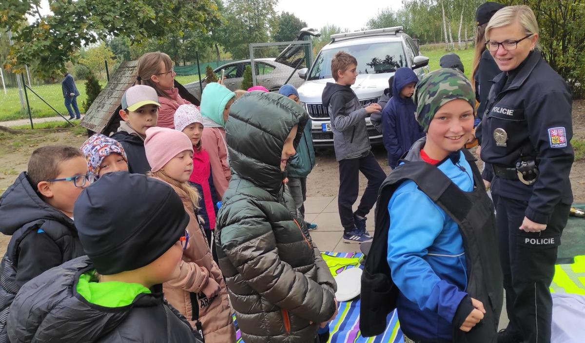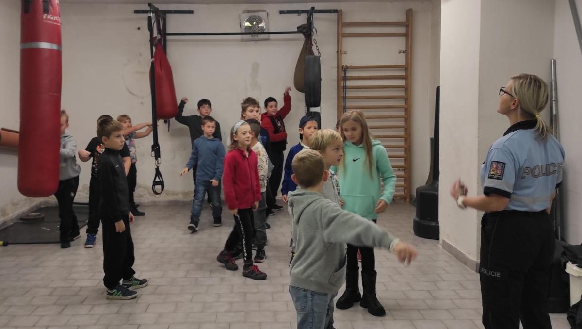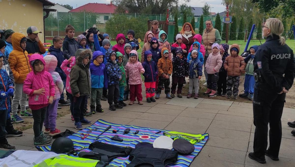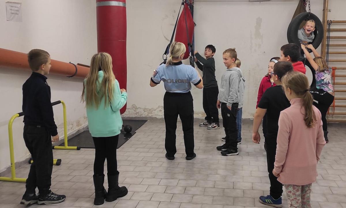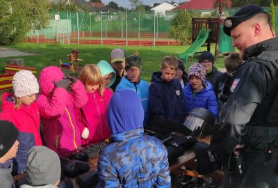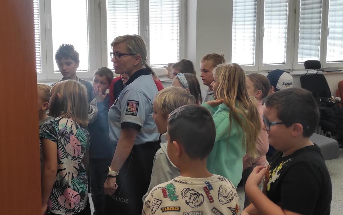 Nejdříve přijali pozvání policisté k nám do školy. S dětmi si zopakovali všechna důležitá pravidla chování nejen v dopravě. Děti si pak mohly vyzkoušet policejní výbavu a to včetně vozu. Na oplátku jsme pak byli pozváni my na návštěvu policejní stanice v Mladé Boleslavi. Tak to byl opravdu zážitek! A nebyl jenom příjemný. Kde pracují policisté, jak se opatrují důkazy, jak se vyšetřuje obviněný nebo naopak kam jít ohlásit přestupek ještě šlo. Ale místa, kde lumpové čekají na svůj ortel, bychom už vidět nechtěli. Na závěr si děti pořádně posílily svou fyzičku v policejní tělocvičně.