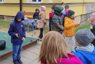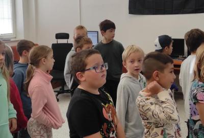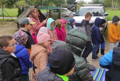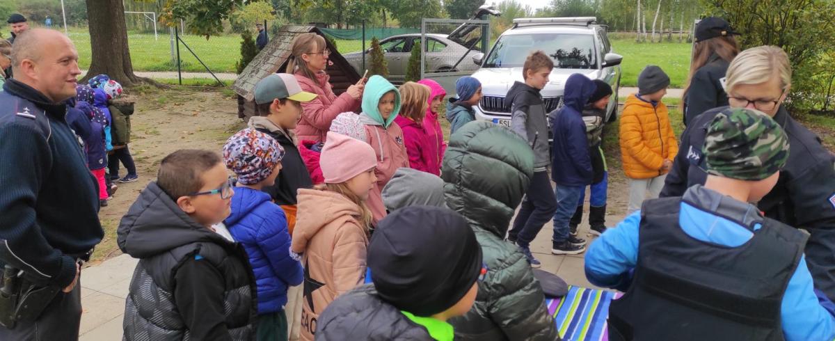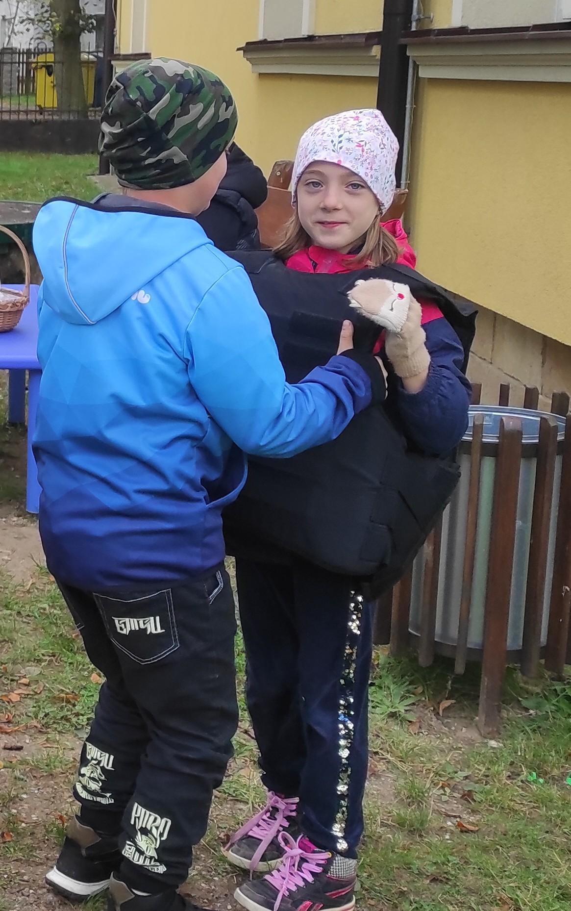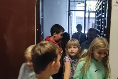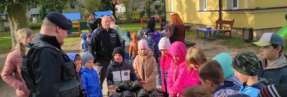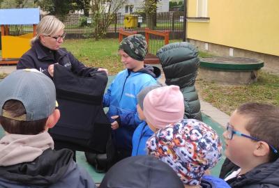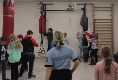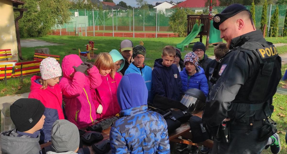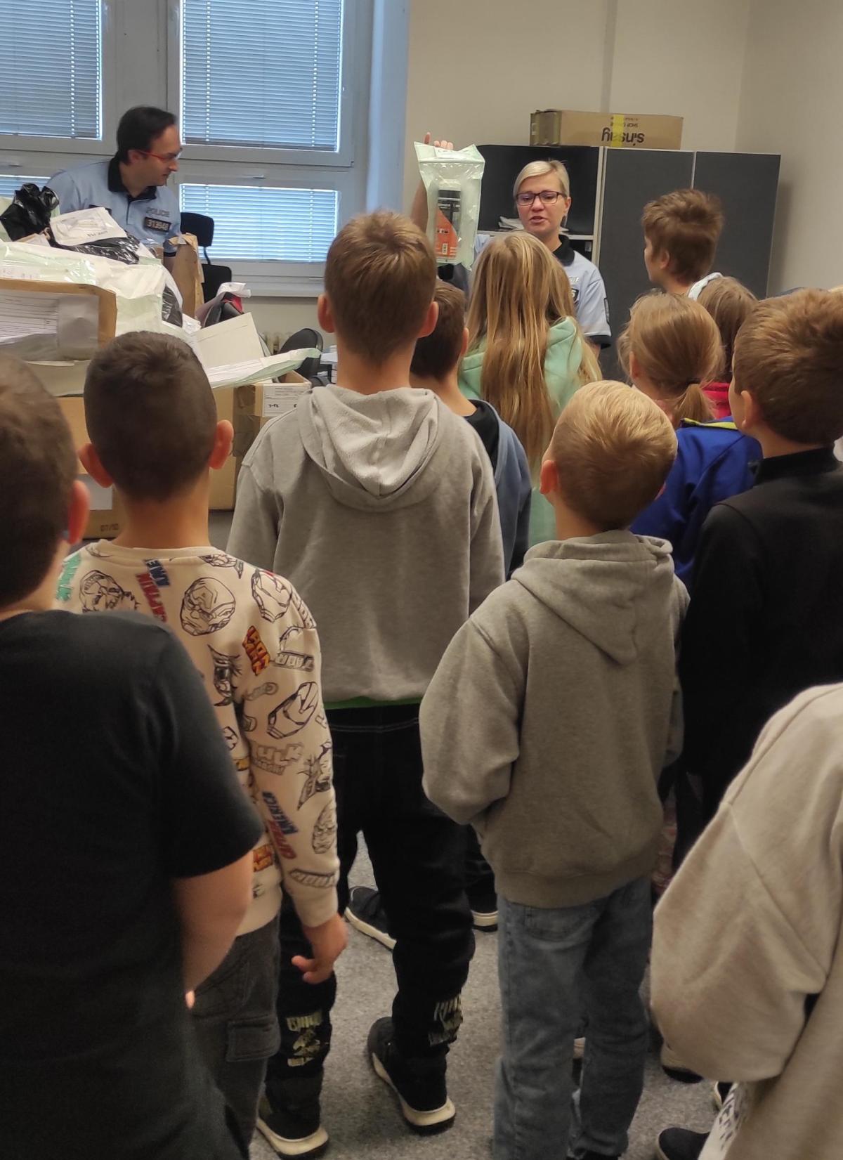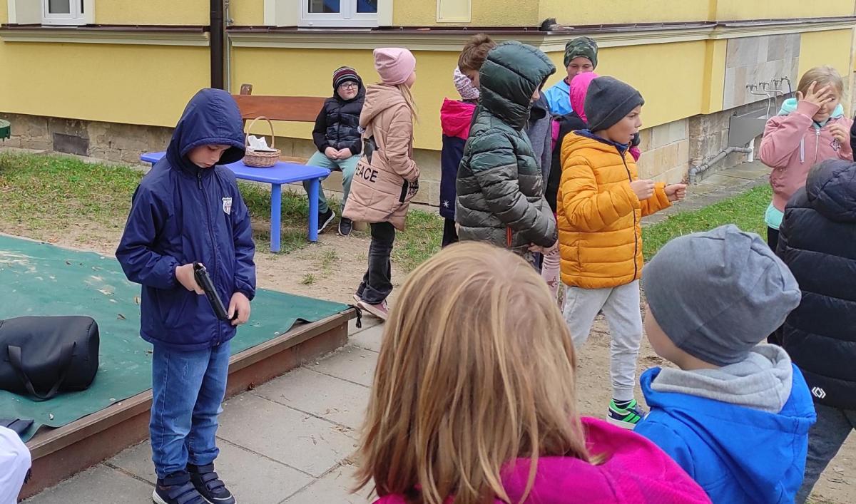 Nejdříve přijali pozvání policisté k nám do školy. S dětmi si zopakovali všechna důležitá pravidla chování nejen v dopravě. Děti si pak mohly vyzkoušet policejní výbavu a to včetně vozu. Na oplátku jsme pak byli pozváni my na návštěvu policejní stanice v Mladé Boleslavi. Tak to byl opravdu zážitek! A nebyl jenom příjemný. Kde pracují policisté, jak se opatrují důkazy, jak se vyšetřuje obviněný nebo naopak kam jít ohlásit přestupek ještě šlo. Ale místa, kde lumpové čekají na svůj ortel, bychom už vidět nechtěli. Na závěr si děti pořádně posílily svou fyzičku v policejní tělocvičně.