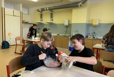 Školní družina se na jedno odpoledne proměnila v rušnou kuchařskou dílnu, kde to krásně vonělo a smích se ozýval ze všech koutů.