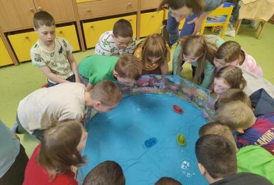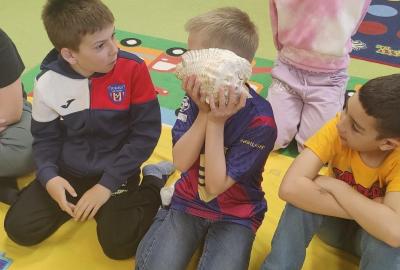 V pátek, 17. 4., za námi přijela paní Olga Hušková z ekocentra FOSA Liberec, která velmi poutavou formou dětem přiblížila bohatý život v oceánech a vysvětlila vliv přírodních zákonitostí na moře.