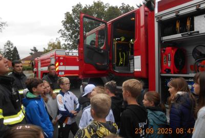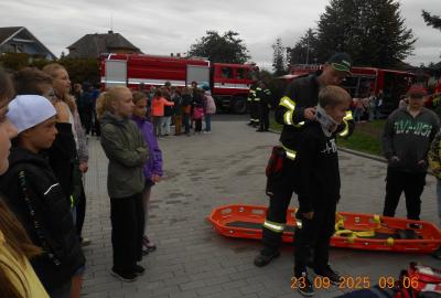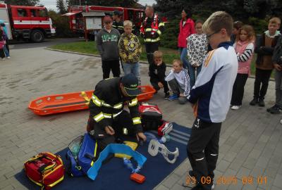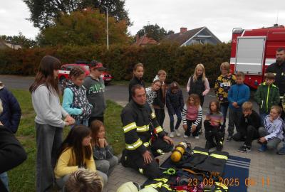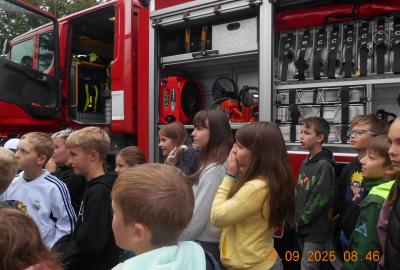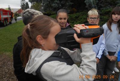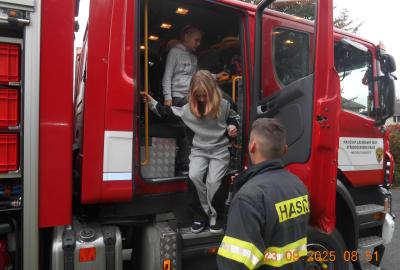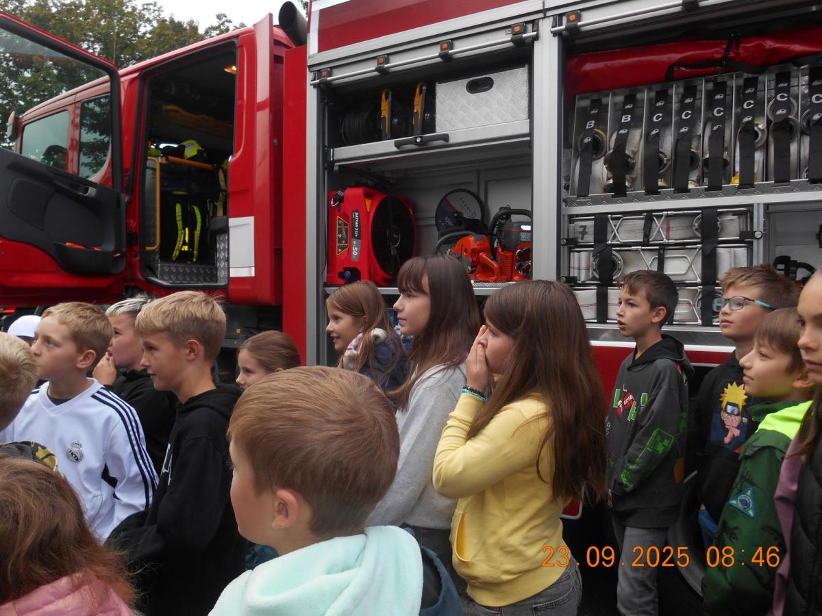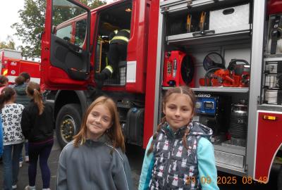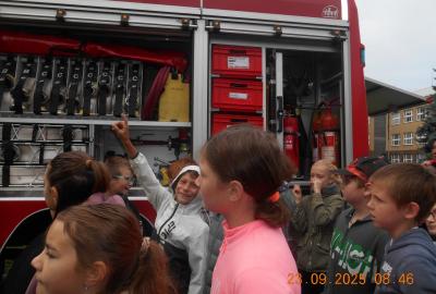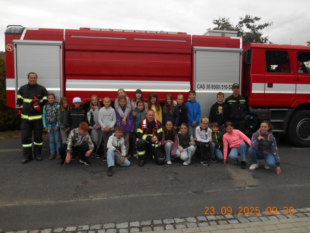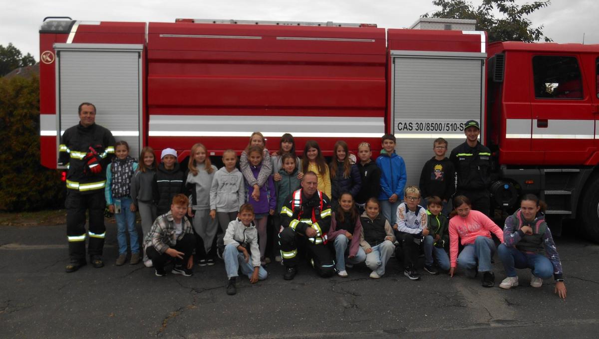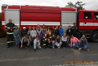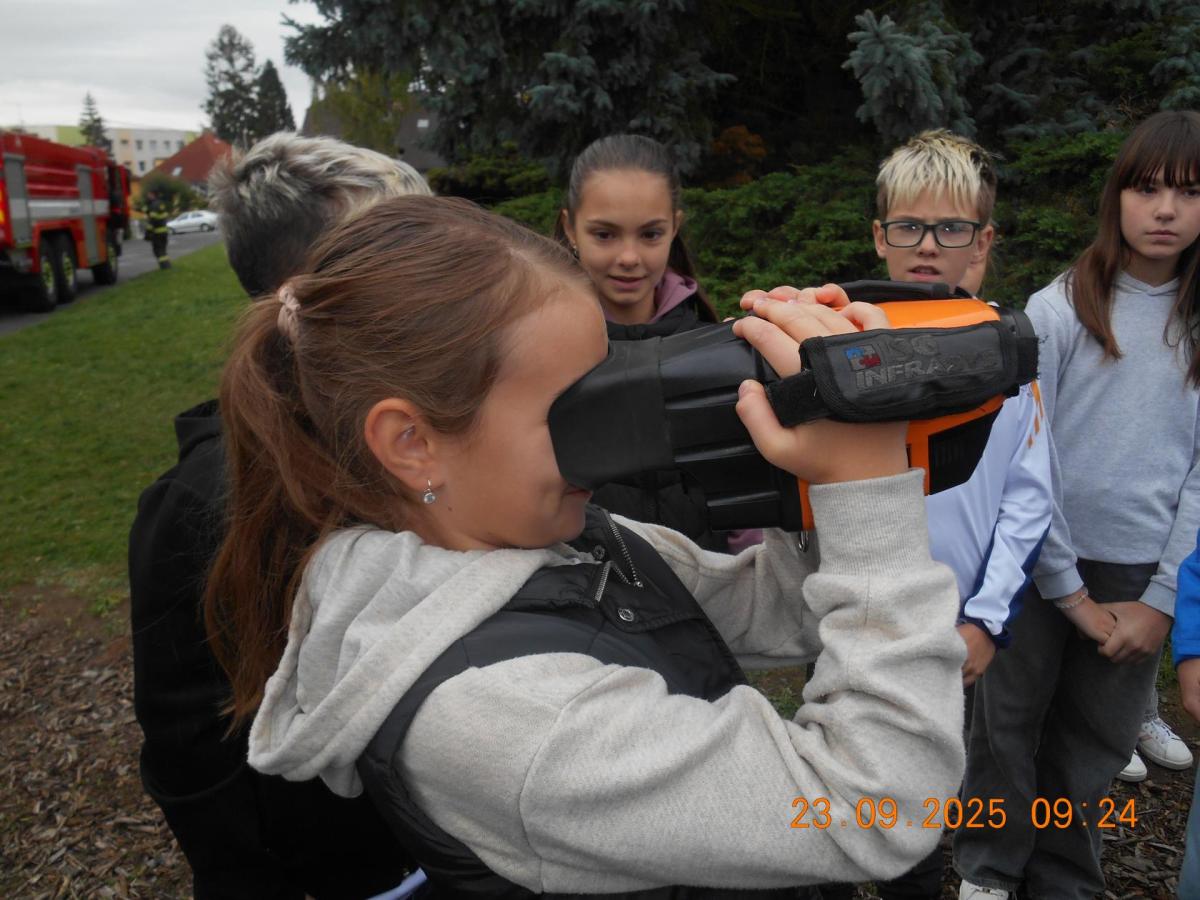 Během několika minut jsme všichni spořádaně opustili naše učebny a shromáždili se před školou. Hasiči zkontrolovali přesný počet žáků i zaměstnanců školy. Vše bylo rychlé a stav žactva souhlasil. Druhý stupeň se poté vrátil k výuce, ale 4. a 5. ročníky před školou zůstaly. Byla pro nás připravena tři stanoviště. Na každém z nich jsme se dozvěděli spoustu zajímavostí týkajících se nejen náplně práce hasičů, ale i jakou mají technickou vybavenost, co musí mít na sobě při zásahu, ... Uvědomili jsme si, že hasiči jsou pro nás všechny důležití nejen při hašení požárů, ale i při dopravních nehodách, při záplavách - zkrátka ve všech oblastech našeho bytí zachraňují naše životy i náš majetek, za což jim všem DĚKUJEME.