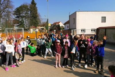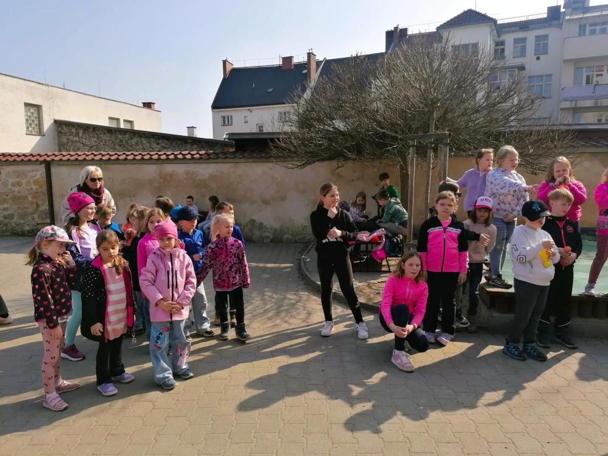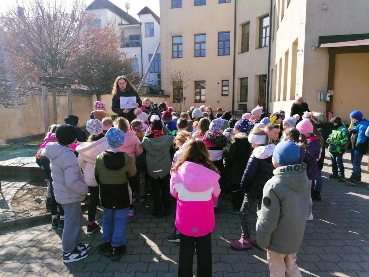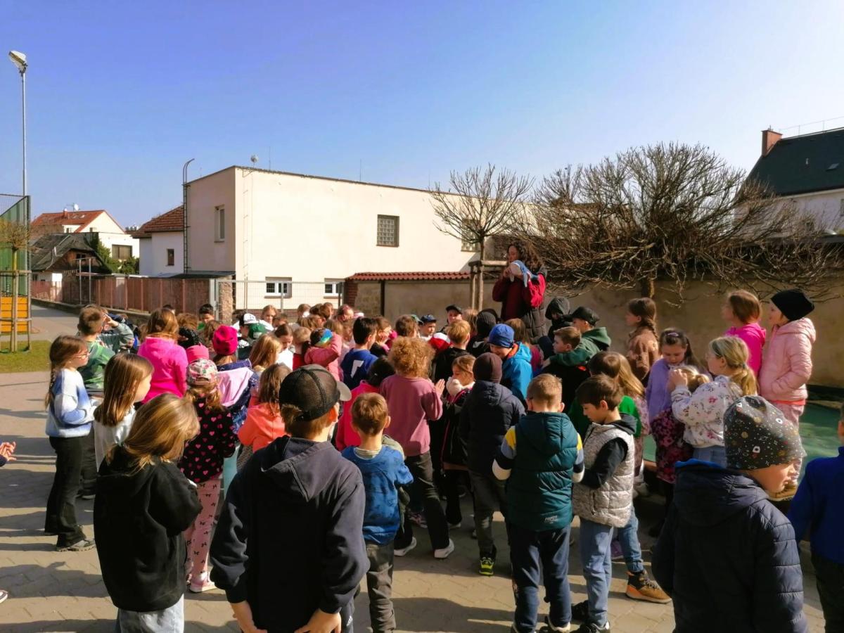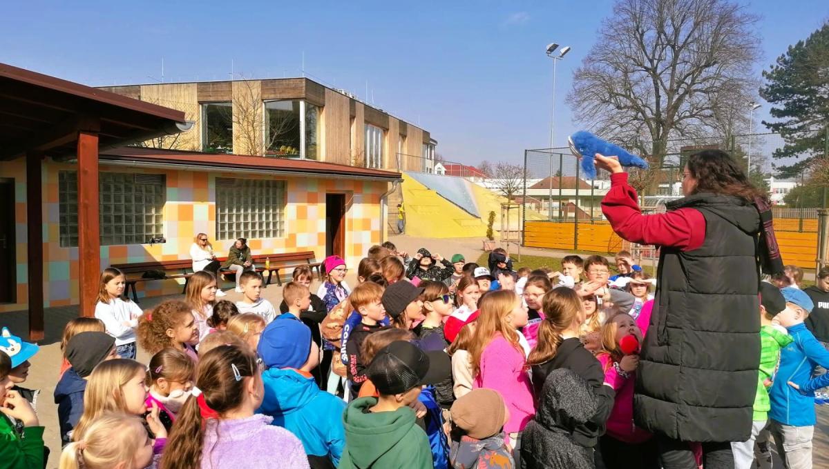 Společně ji vysvobodily a dopravily do bezpečí – prvňáčci kolem ní vytvořili ochranný kruh a pomohli ji dovést až do cíle.