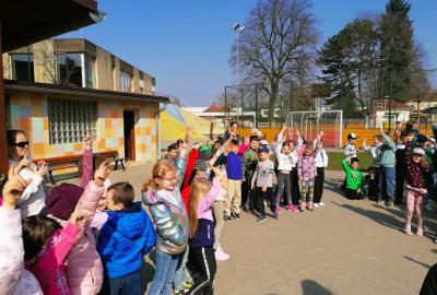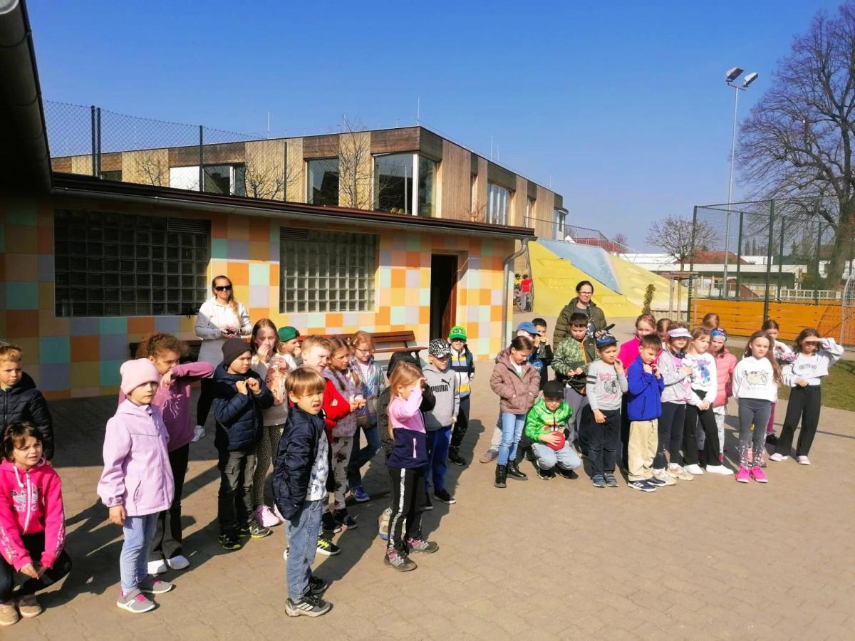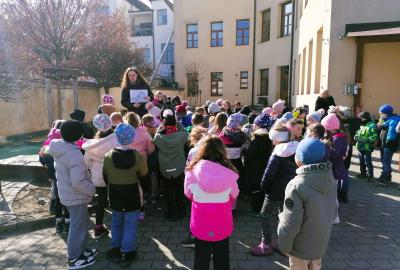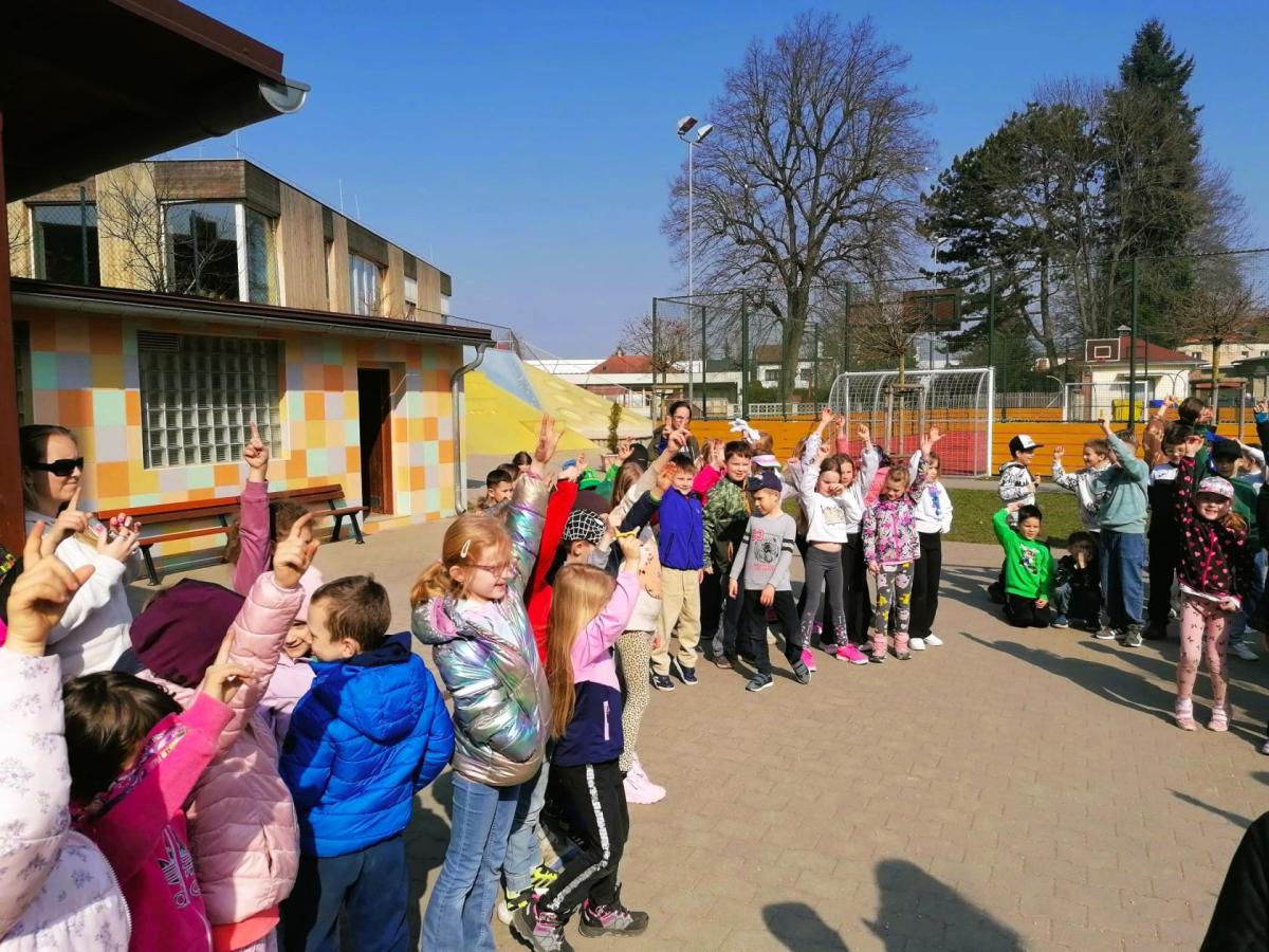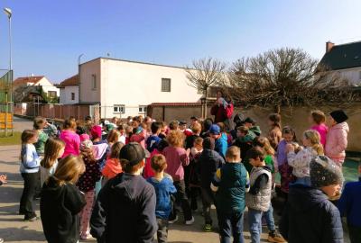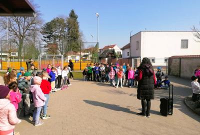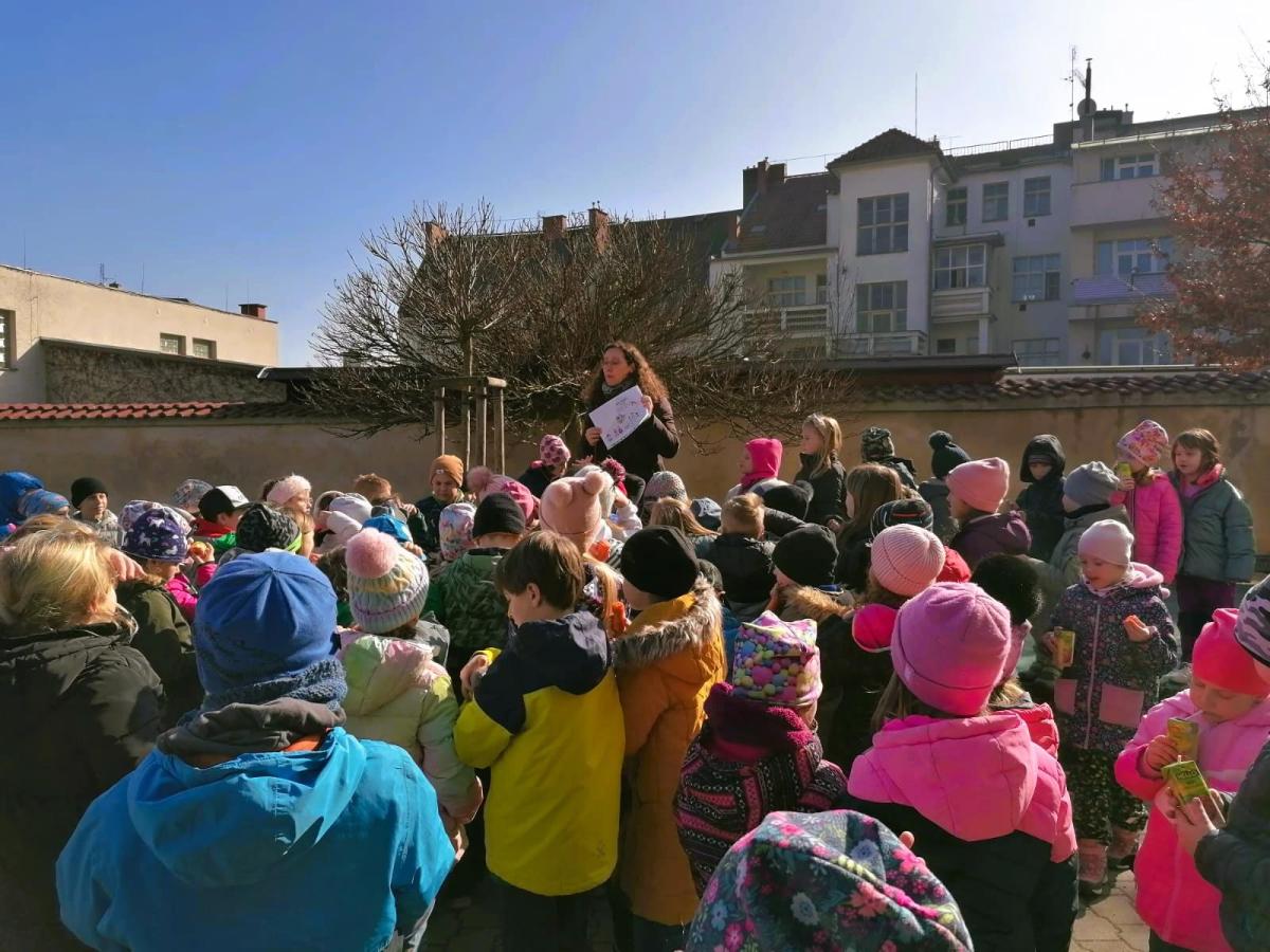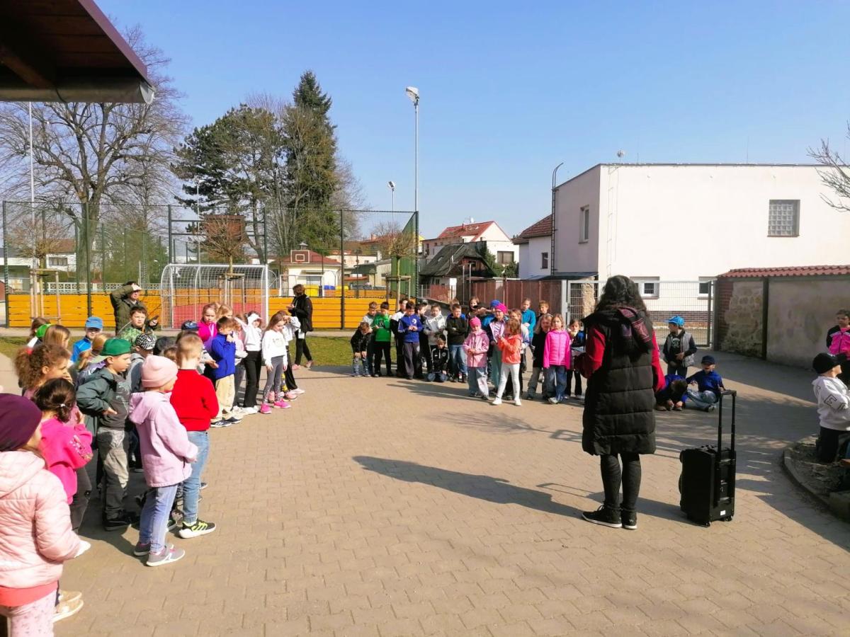 Společně ji vysvobodily a dopravily do bezpečí – prvňáčci kolem ní vytvořili ochranný kruh a pomohli ji dovést až do cíle.