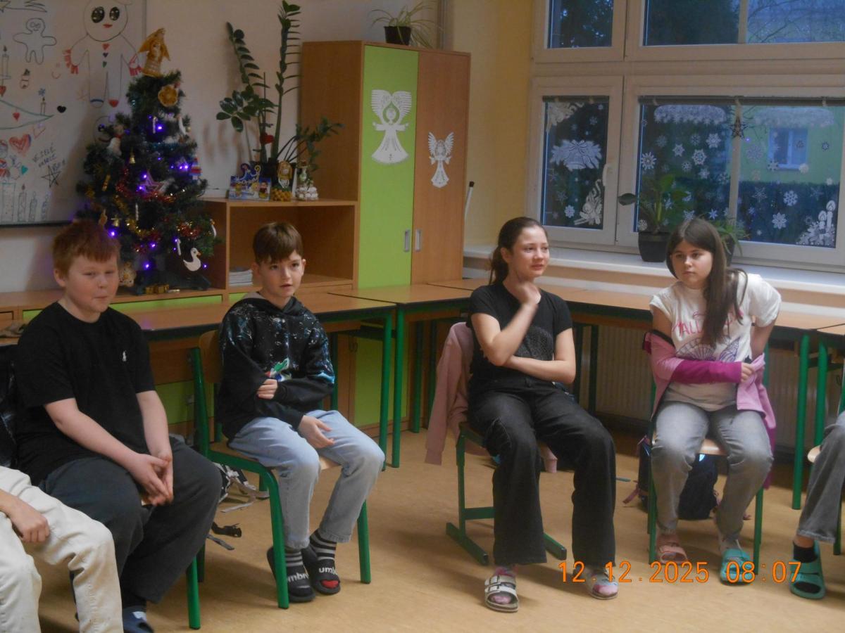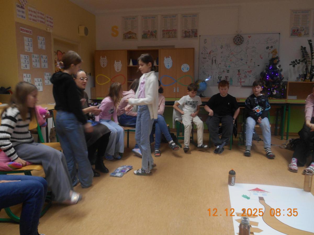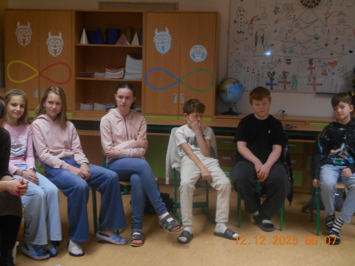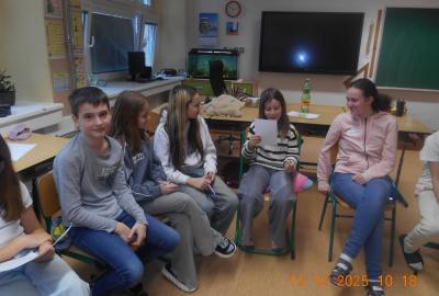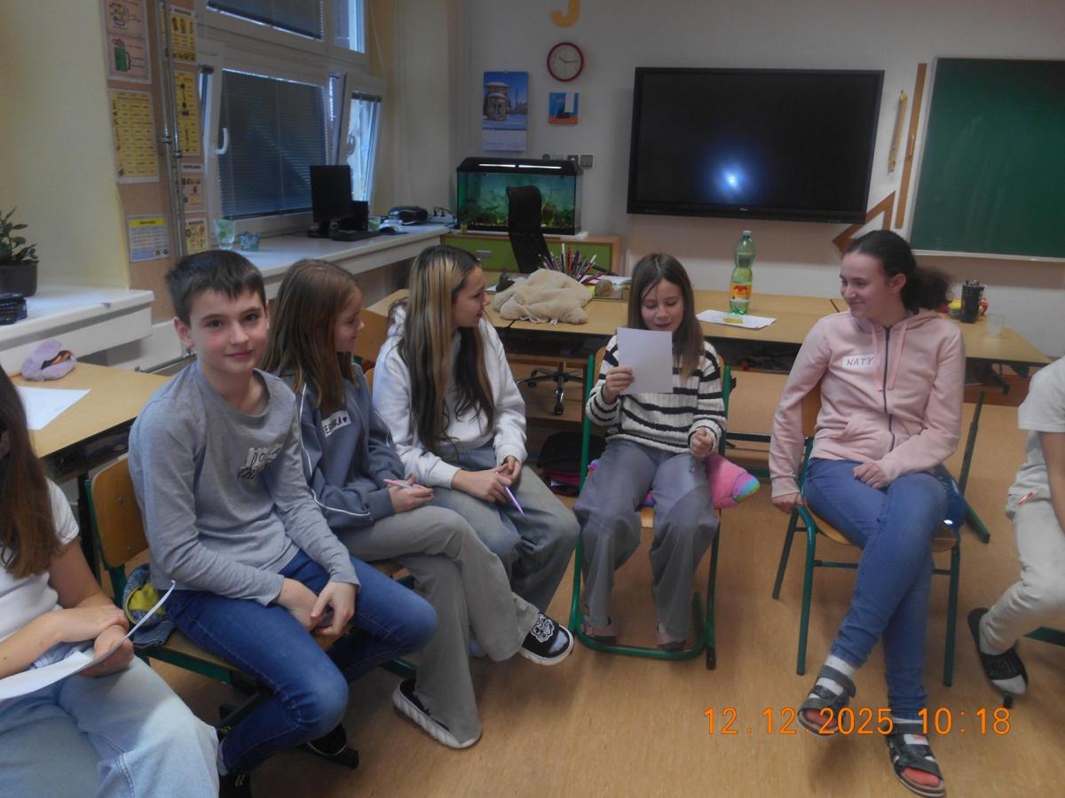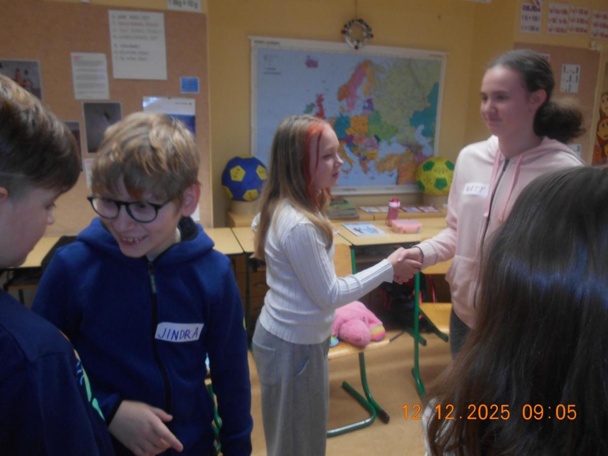 Lektorka Magda k nám přijela z Nymburka. Strávila s námi tři vyučovací hodiny. Během nich jsme měli možnost zjistit nové informace o svých spolužácích, hledali jsme společné zájmy, zážitky a třeba i společné vlastosti. Dělali jsme různé aktivity zaměřené na udržení dobrých vztahů ve třídě, hráli jsme hry. Každý z nás si vytvořil svůj vlastní erb, který vyjadřoval naši osobnost. Doba určená pro setkání velmi rychle uběhla a my už se těšíme na další setkání.