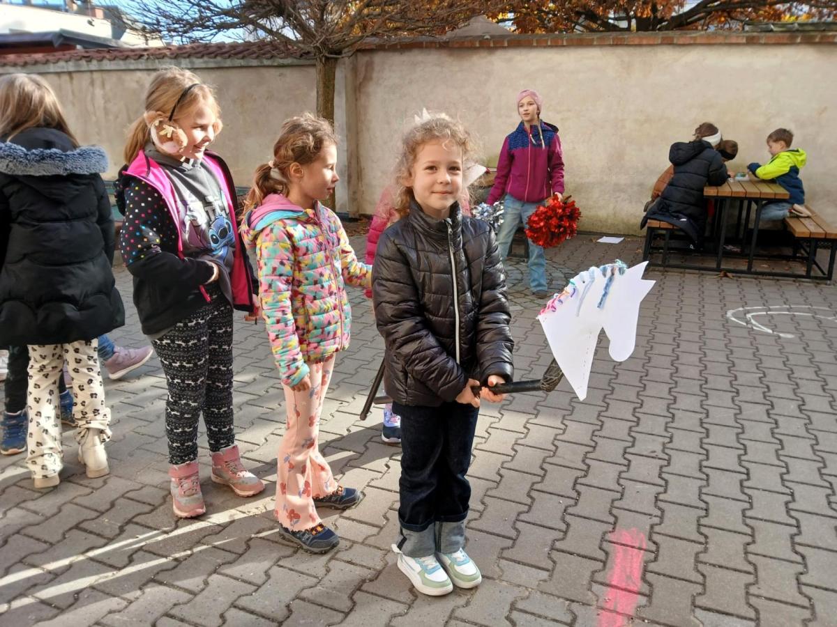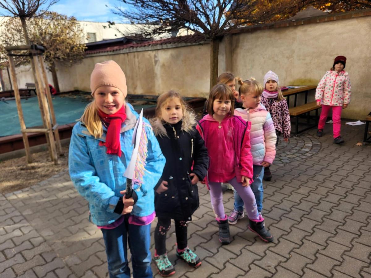 Děti se nejprve seznámily s příběhem svatého Martina – statečného vojáka, který se podělil o svůj plášť s chudým žebrákem. Povídali jsme si o tom, co znamená být laskavý, pomáhat druhým a jak můžeme i my udělat někomu radost.