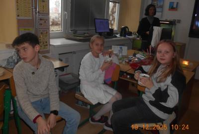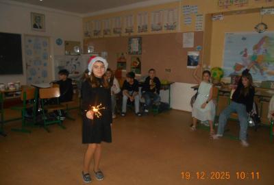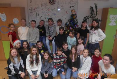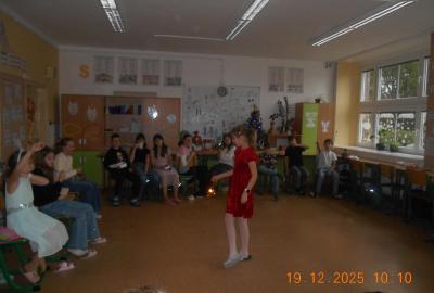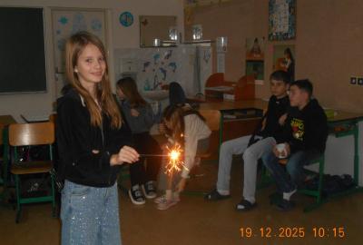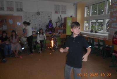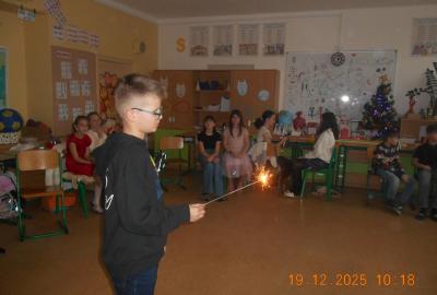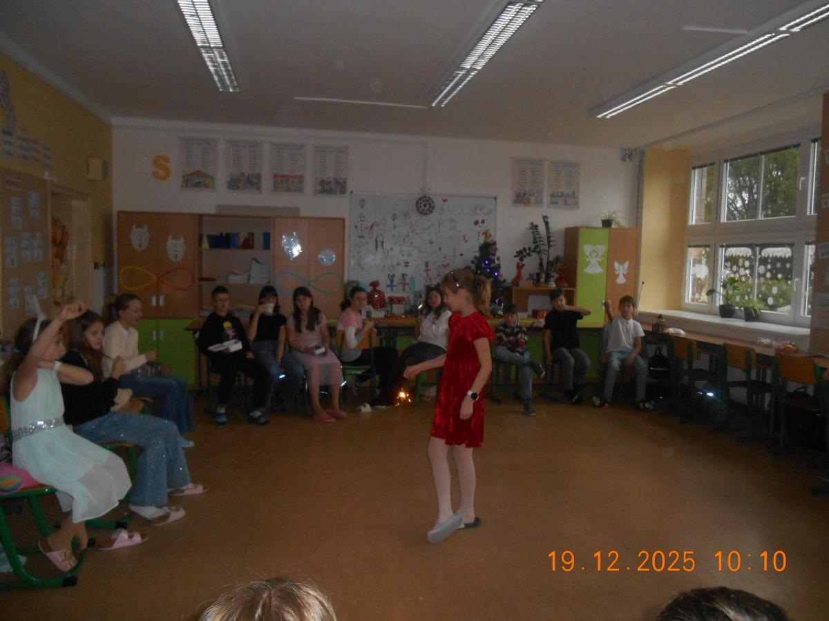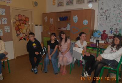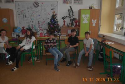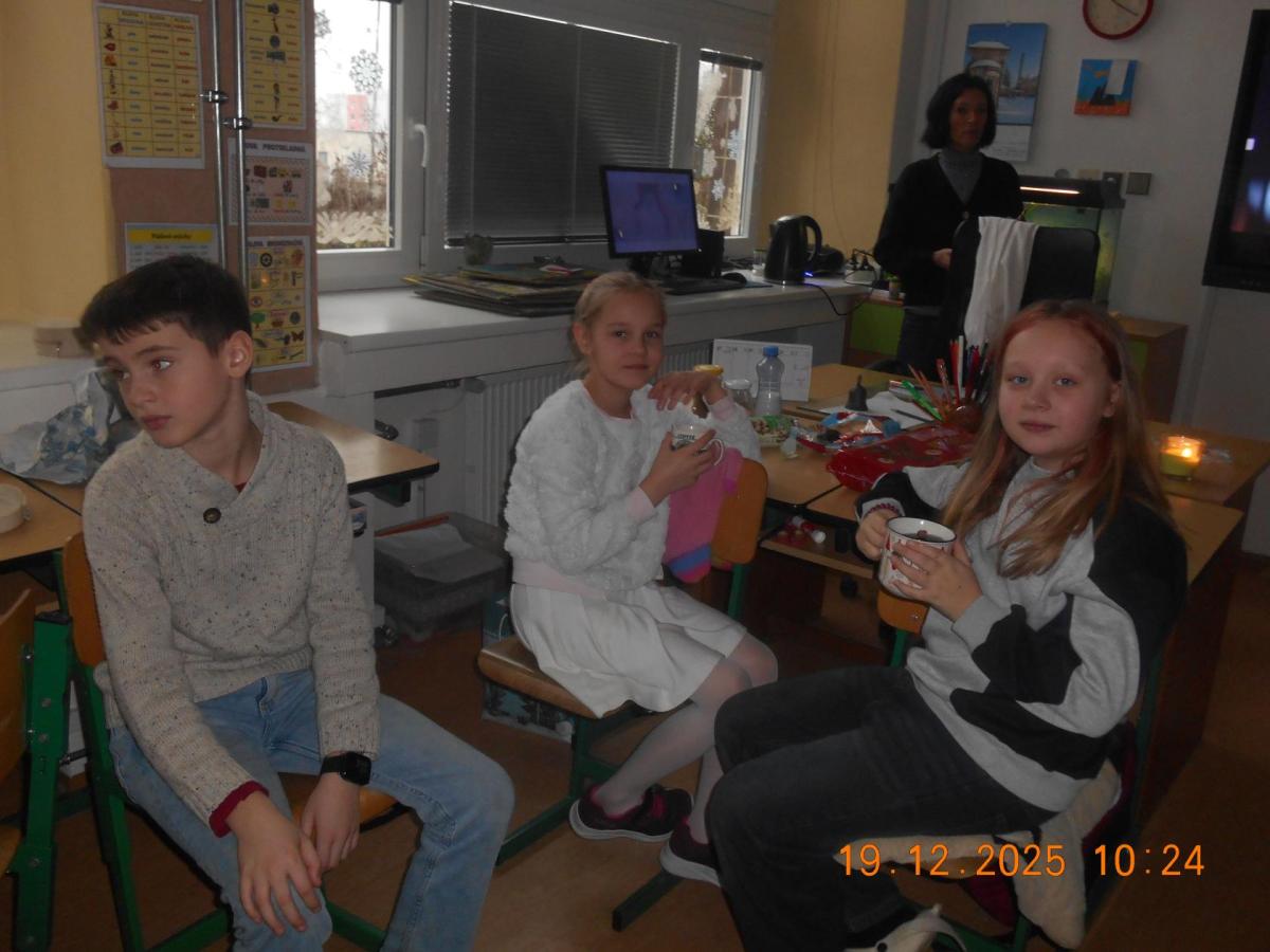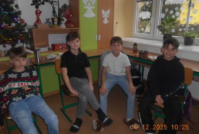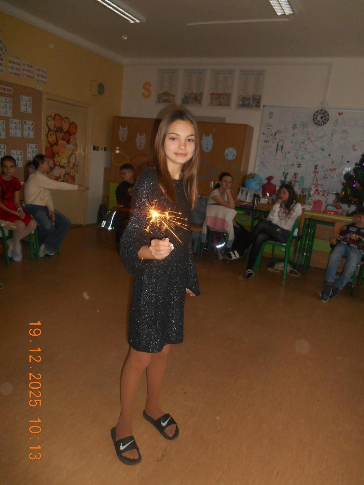 Poslední den roku 2025 ve škole vyšel na pátek 19. 12. Všichni jsme se na tento den nesmírně těšili a řádně se na něj připravili. Přinesli jsme si hrníčky na čaj, cukroví a pochopitelně i dárky pro své kamarády. Besídka proběhla ve veselé vánoční náladě. Nakonec jsme si navzájem si popřáli krásné a pohodové Vánoce. S radostí jsme se rozběhli do svých domovů, kde nás zajisté čekají další krásná překvapení.