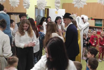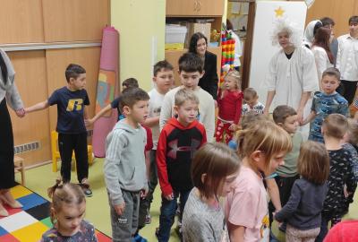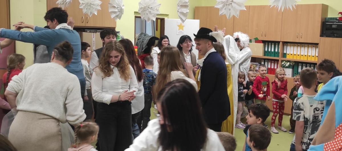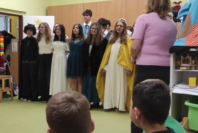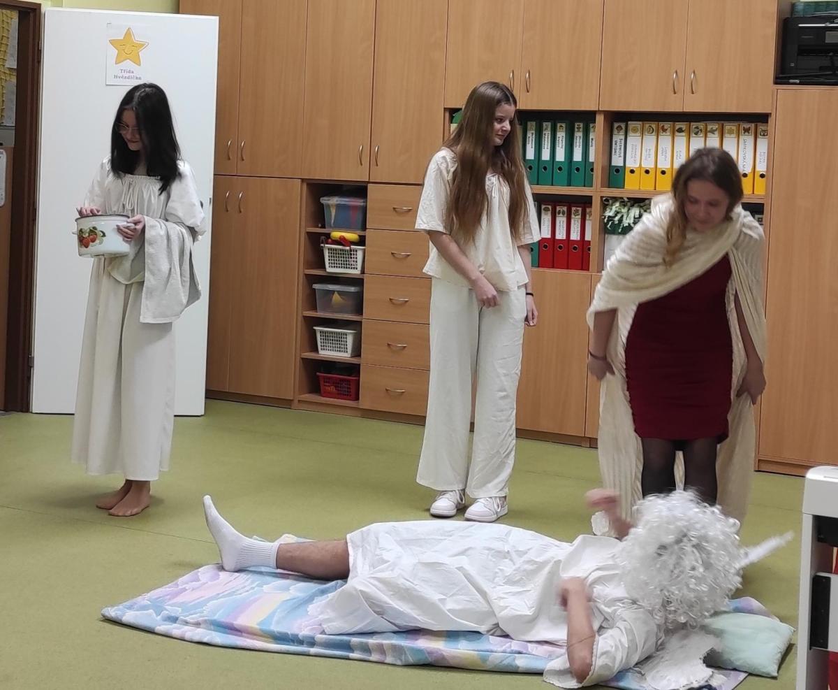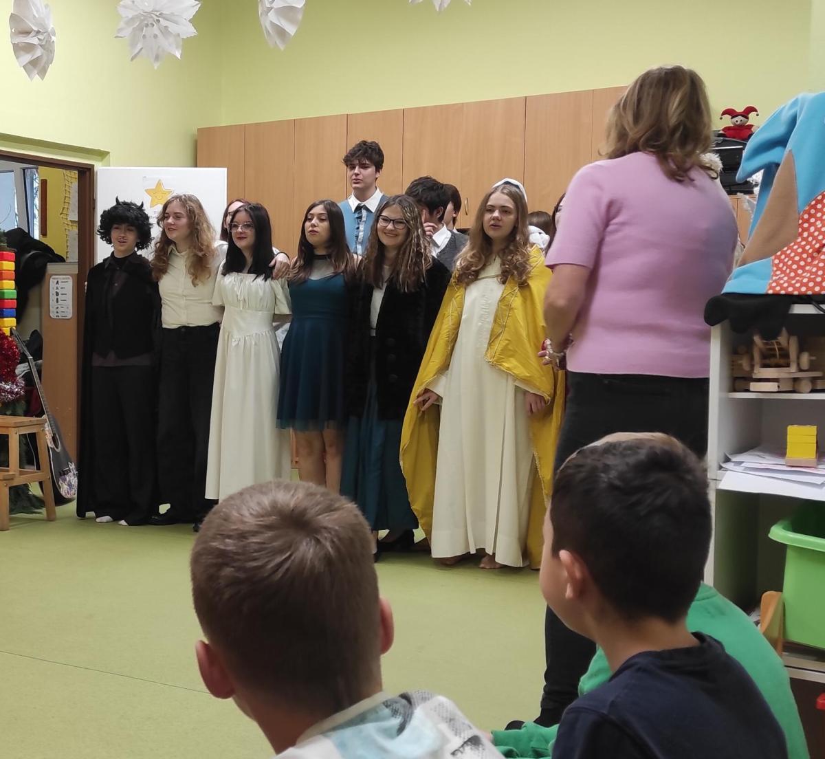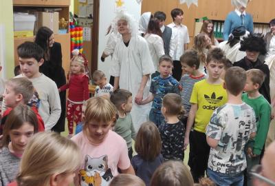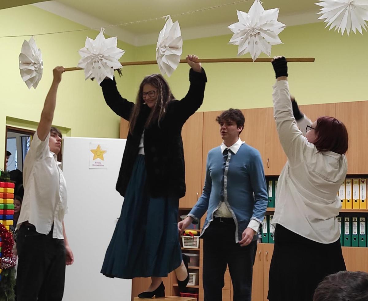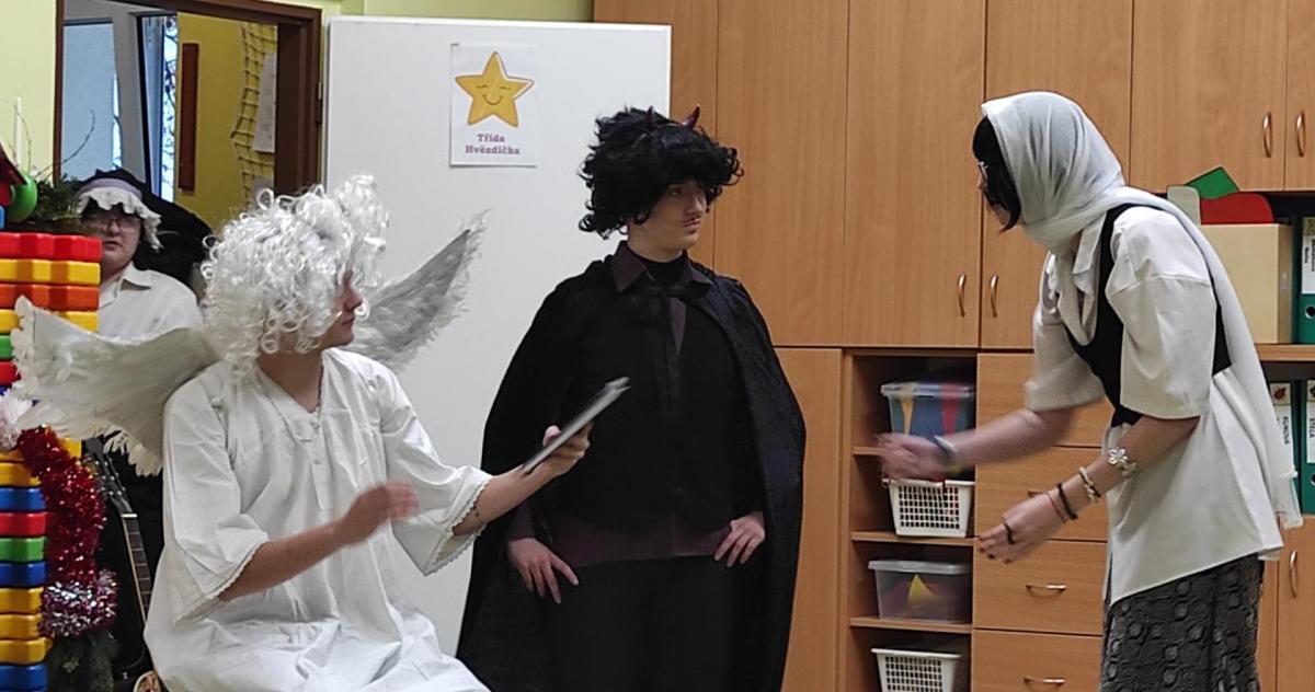 V pondělí, 15. 12., nás navštívili studenti SOŠ A SOU Horky nad Jizerou a pod vedením paní Jany Huzilové zahráli známou pohádku Anděl Páně. Vystoupení doprovodili spoustou písniček, koled i tancem. A my jsme si s radostí zazpívali a zatančili s nimi.