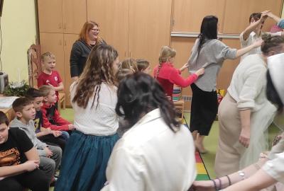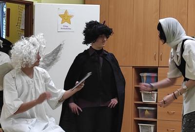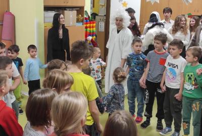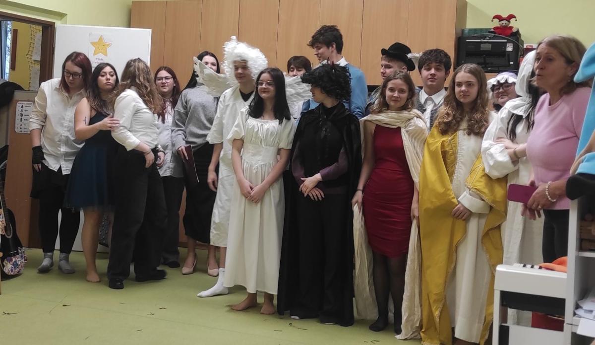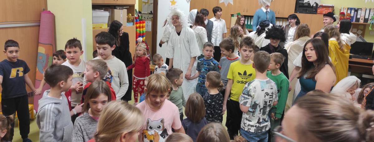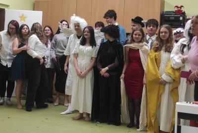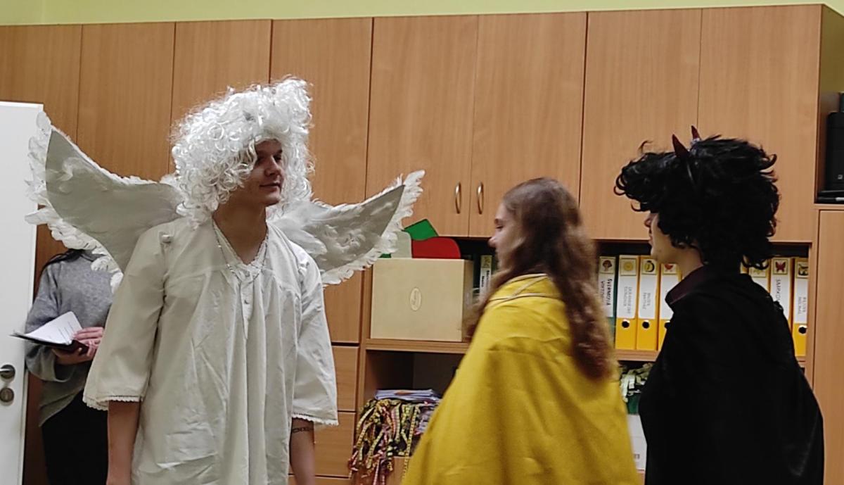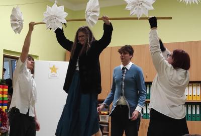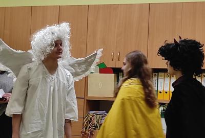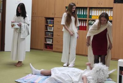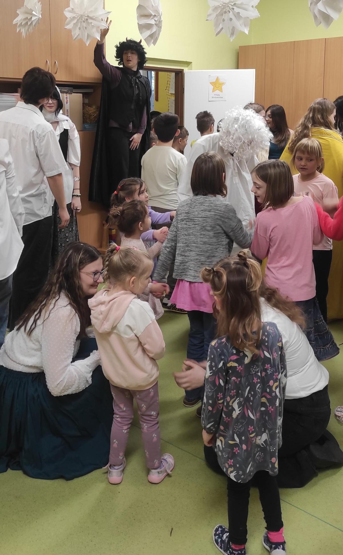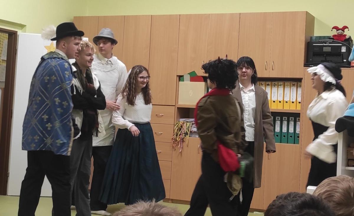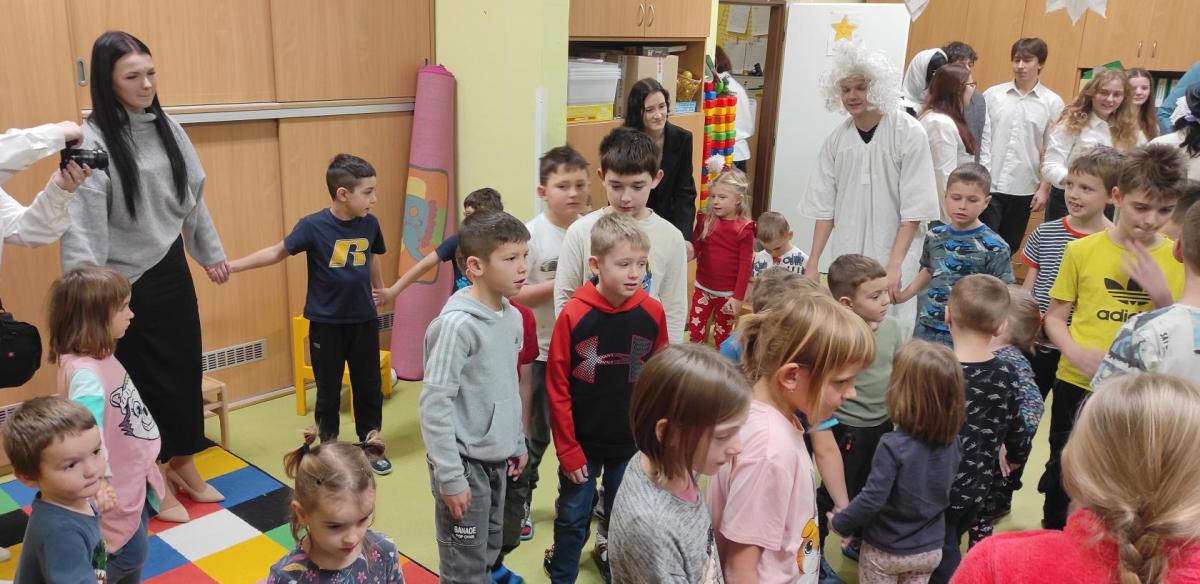 V pondělí, 15. 12., nás navštívili studenti SOŠ A SOU Horky nad Jizerou a pod vedením paní Jany Huzilové zahráli známou pohádku Anděl Páně. Vystoupení doprovodili spoustou písniček, koled i tancem. A my jsme si s radostí zazpívali a zatančili s nimi.